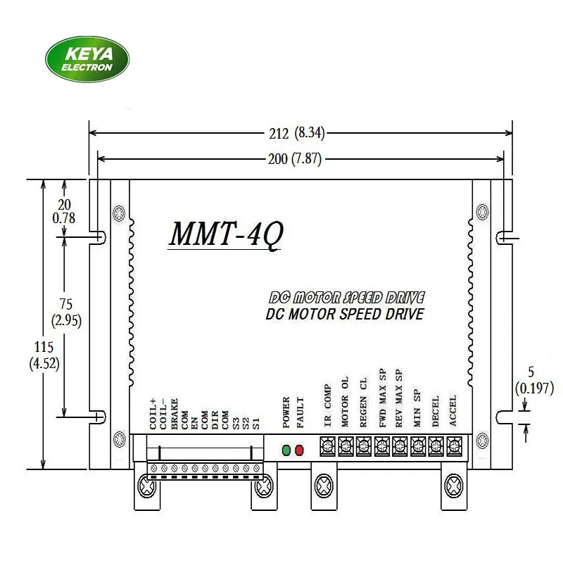 4. Включить/тормоз/направление клеммы Выберите функцию, просто открыв или закрыв сухой контакт или через открытый коллекторный транзистор. 5. Статус светодиодов Светодиоды питания и неисправности обеспечивают визуальное состояние накопителя. 6. Вперед и назад можно установить отдельно 7. Выходной ток может быть установлен 8. Тормозной ток может быть установлен 9. Крутящий момент compensatio 10. Стандартный аналоговый режим управления: аналог: 0-5 в или потенциометр 11. Защита от перенапряжения и меньшего напряжения12. Защита от превышения температуры