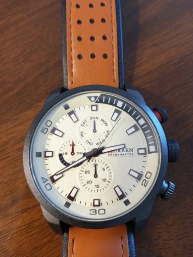 Я не знаю, почему он говорит хронограф, если у него его нет, боковые кнопки декоративные, нефункциональные.