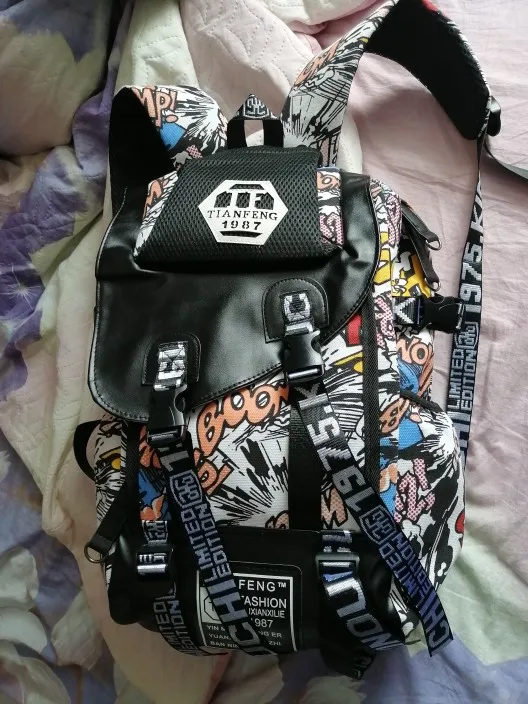 Мужской холщовый рюкзак с граффити, для ноутбука, для мальчиков-подростков, большой рюкзак с мультяшными буквами, для путешествий, XA1788C
