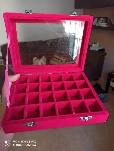 Очень красивая и удобная шкатулка для сережек и колечек. Стеклянная крышка даёт хороший обзор всех украшений. Шкатулка не очень большая, легко помещается в ящике туалетного столика. Качество изделия отличное. Покупкой очень довольна!