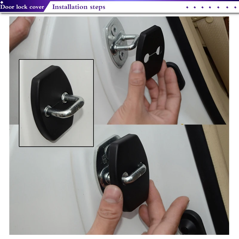 Характеристика: 1. Идеальное украшение для вашего автомобиля. 2. Высокое качество, цвет не изменится в течение 1 года. 3. Уменьшает шум и вибрацию при закрытии двери 4. Защищает защелку дверного замка от ржавчины. 5. Термопластик литой формы обладает превосходной прочностью и долговечностью 6. Легко установить. 7. Профессиональный дизайн, оптовая продажа для экспорта.