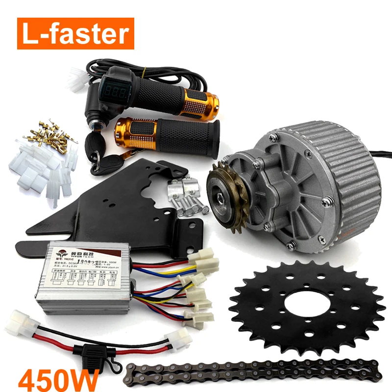 24 В 36 в 450 Вт комплект для переоборудования электрического велосипеда для ротора дискового тормоза, комплект с левым креплением электродвигателя велосипеда с ручкой дроссельной заслонки