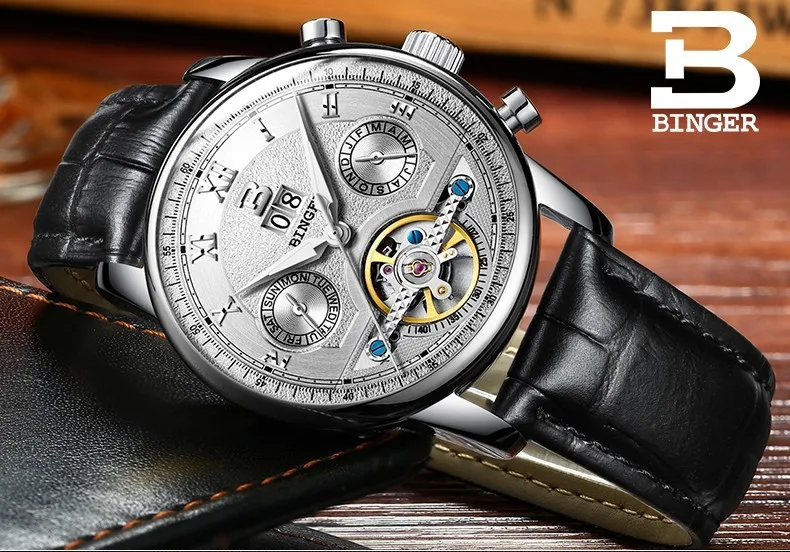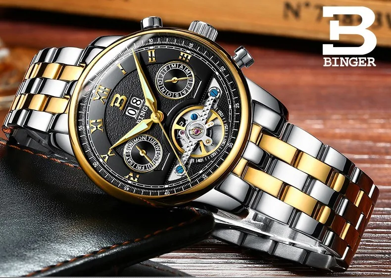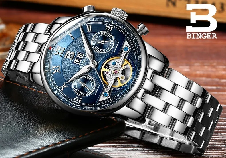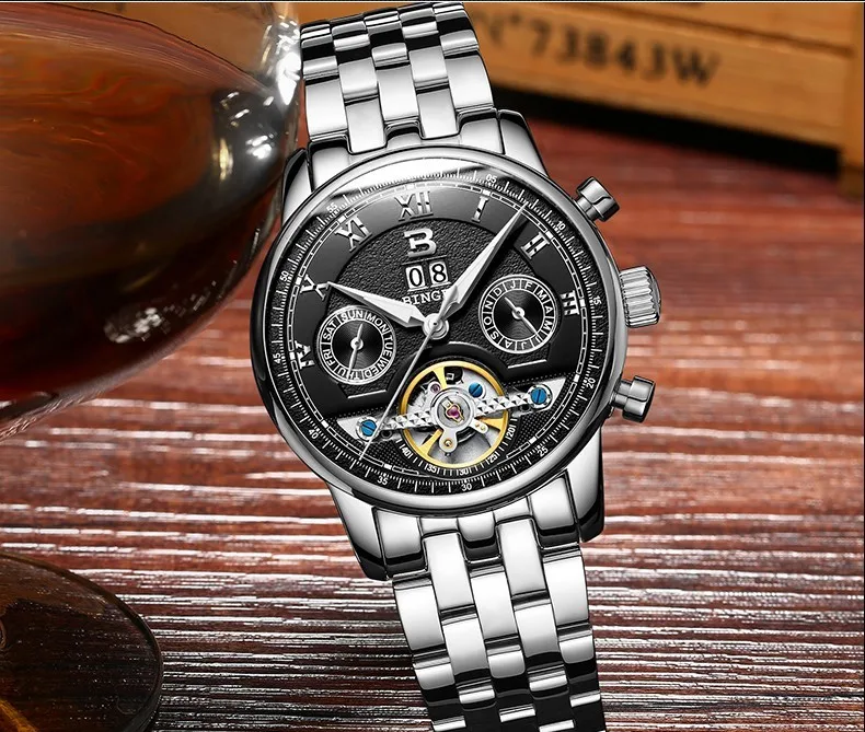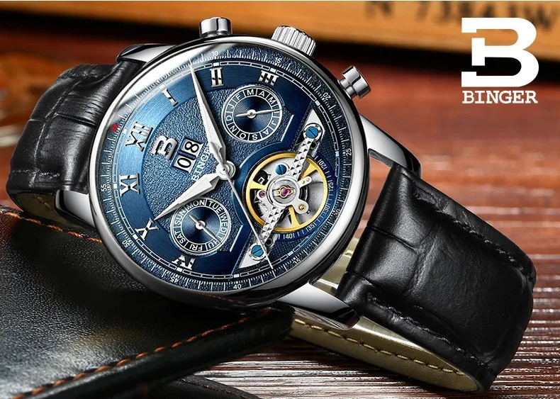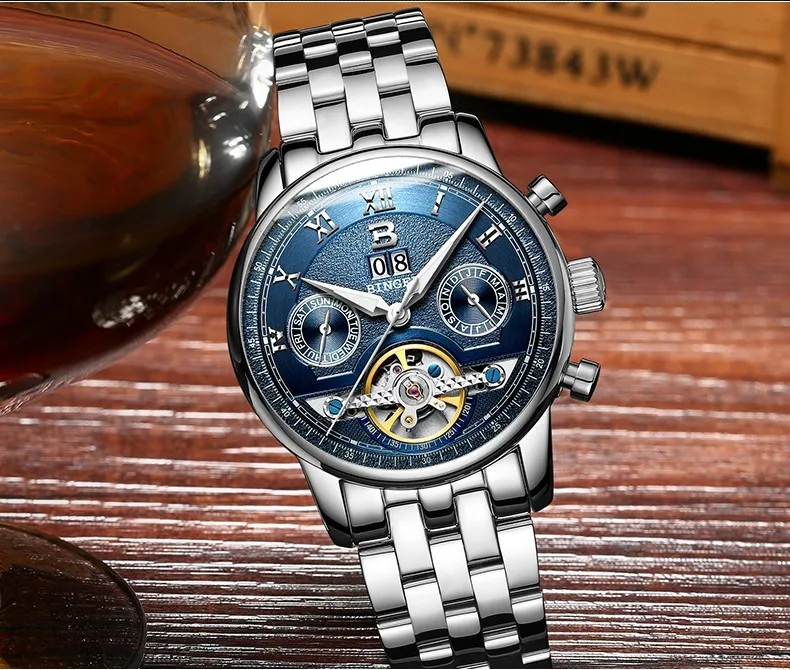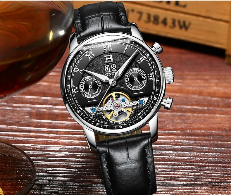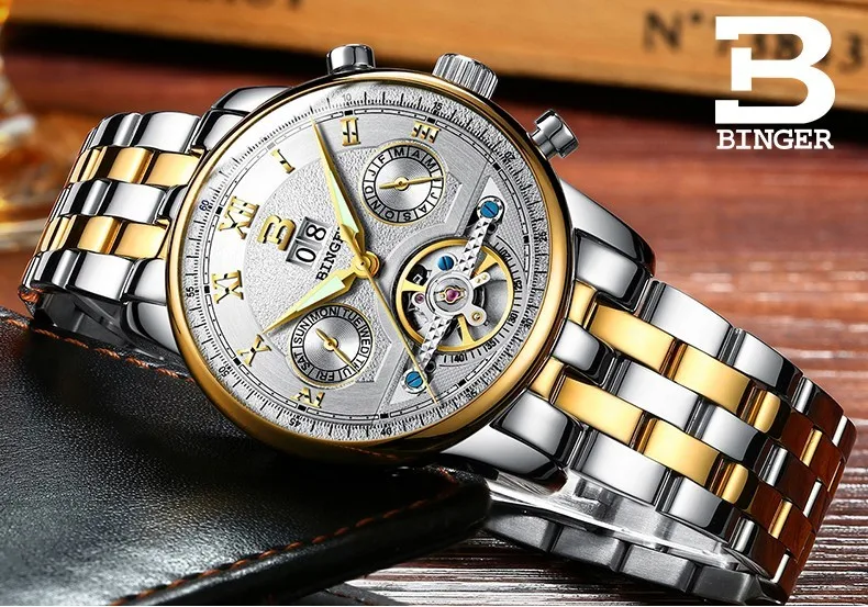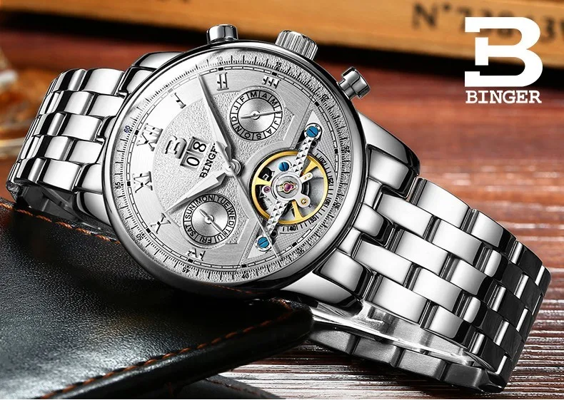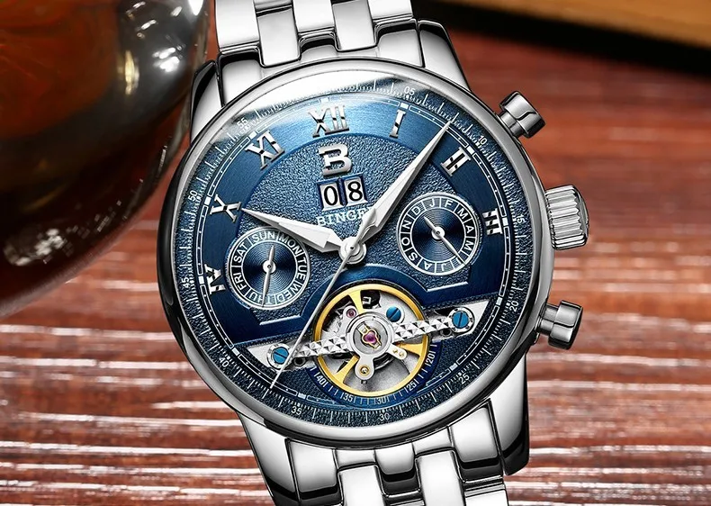 Швейцарские часы BINGER, мужские часы люксового бренда Tourbillon, многофункциональные водонепроницаемые Механические Мужские наручные часы, мужские наручные часы, B-8603M-6 icon star icon star icon star icon star icon star