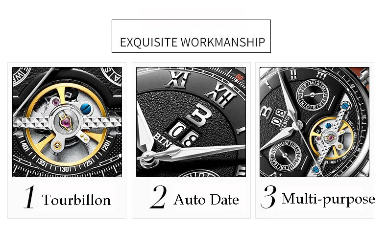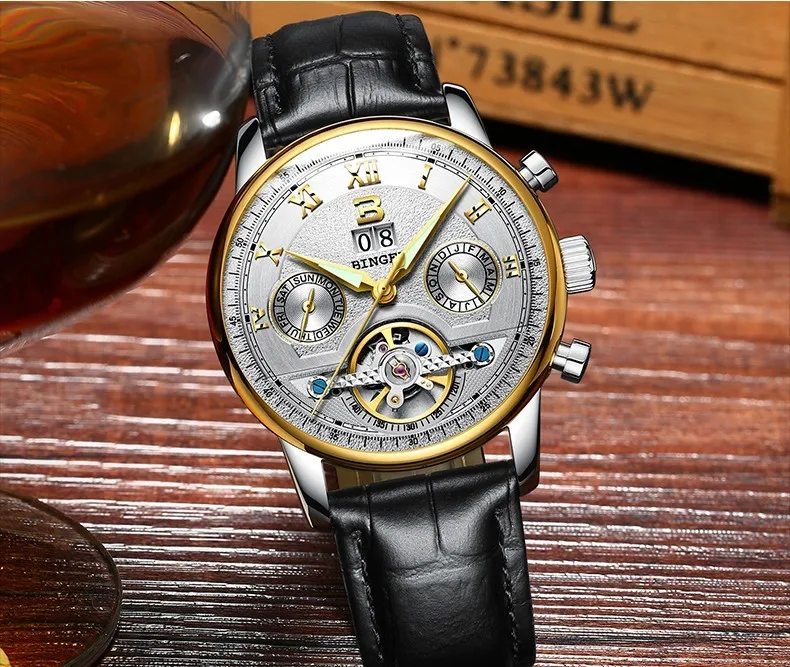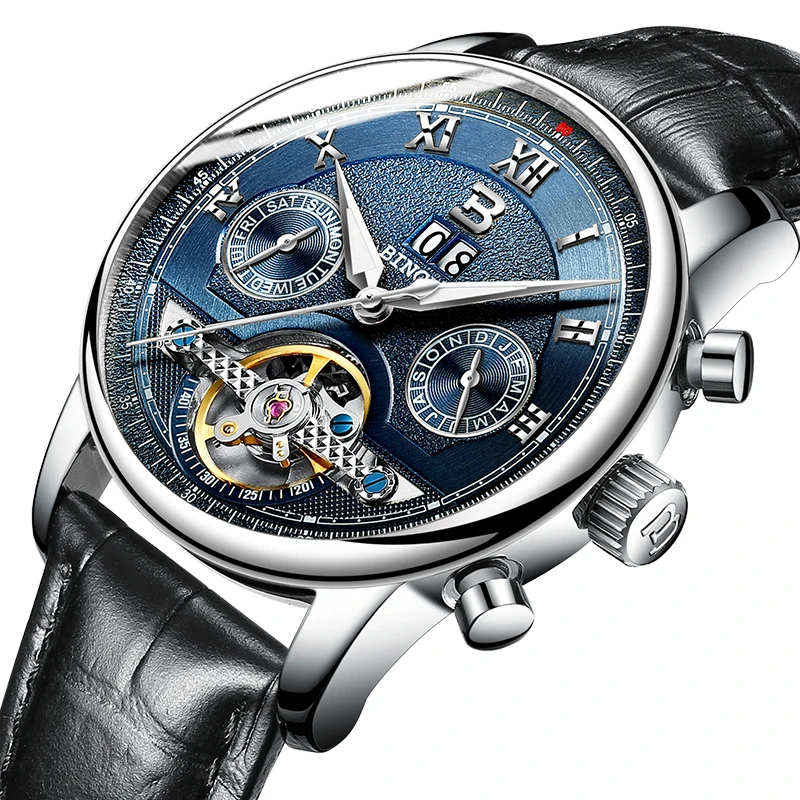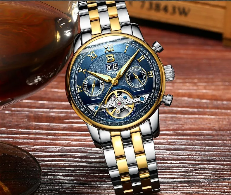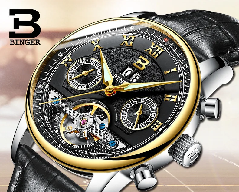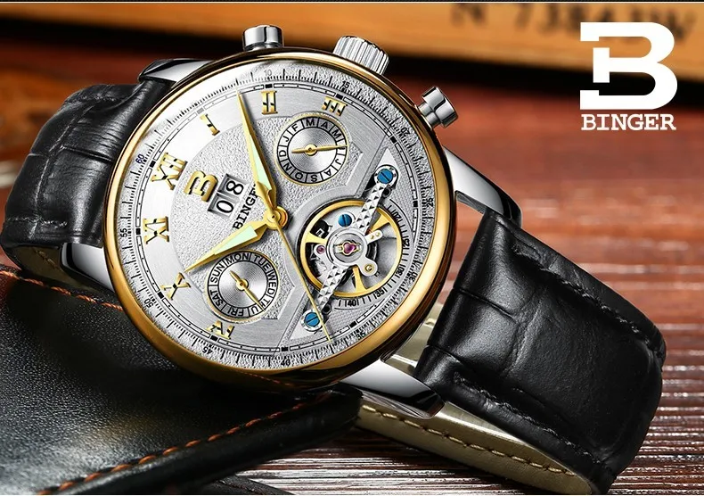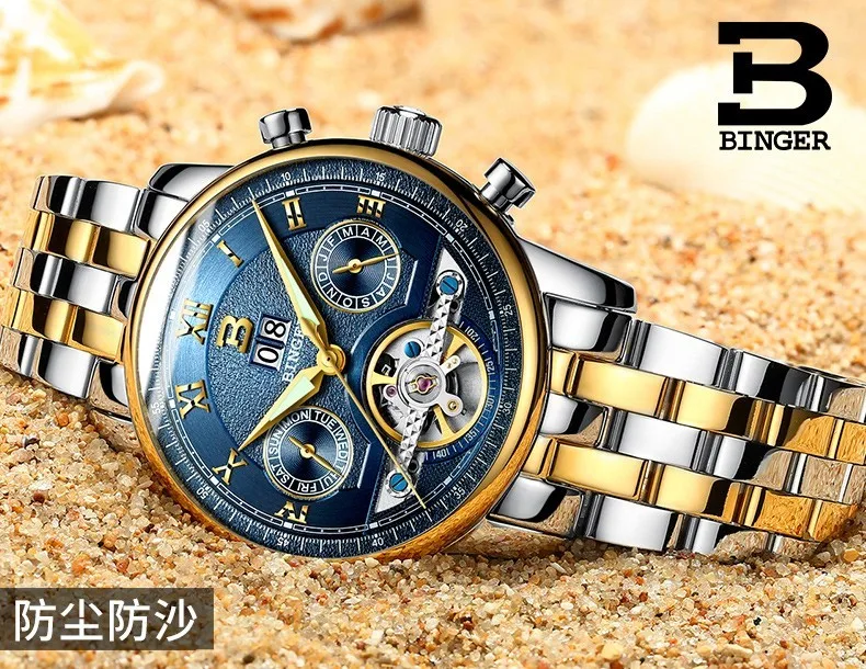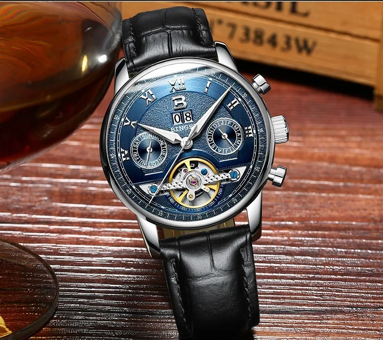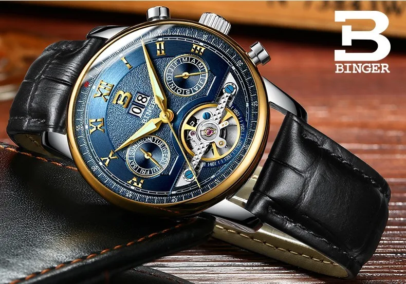 Швейцарские часы BINGER, мужские часы люксового бренда Tourbillon, многофункциональные водонепроницаемые Механические Мужские наручные часы, мужские наручные часы, B-8603M-6 icon star icon star icon star icon star icon star