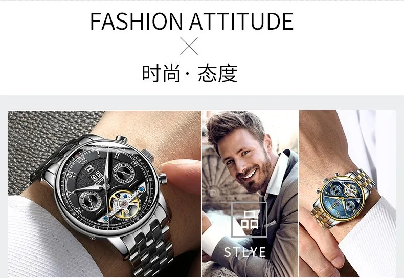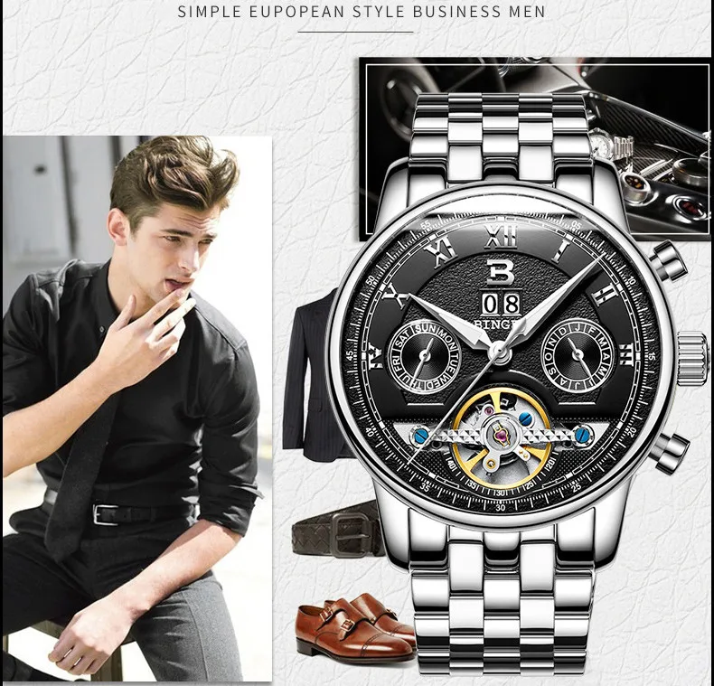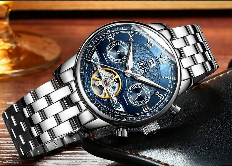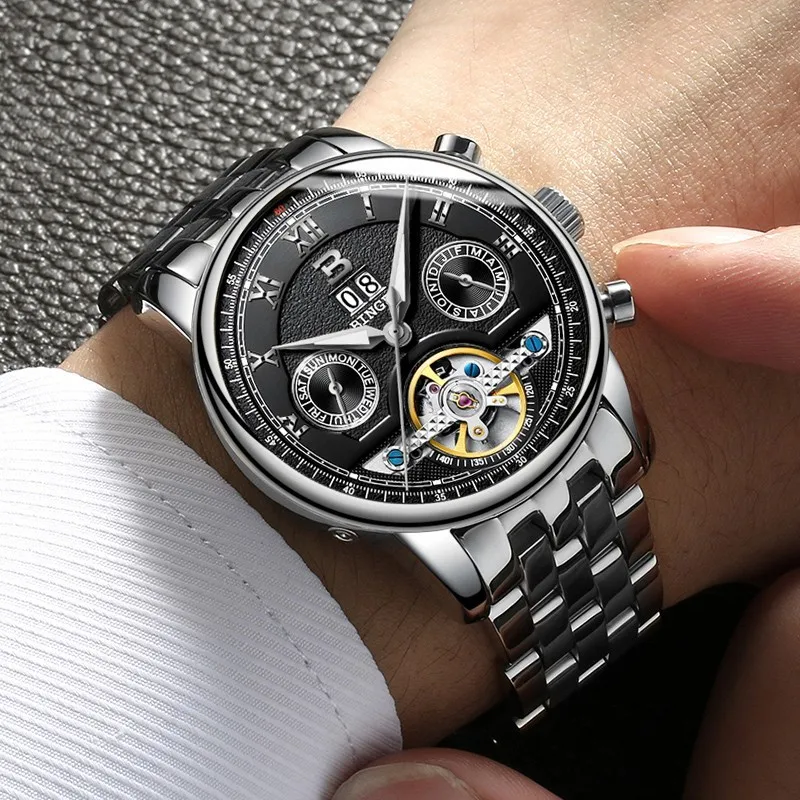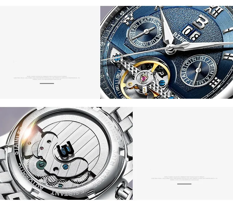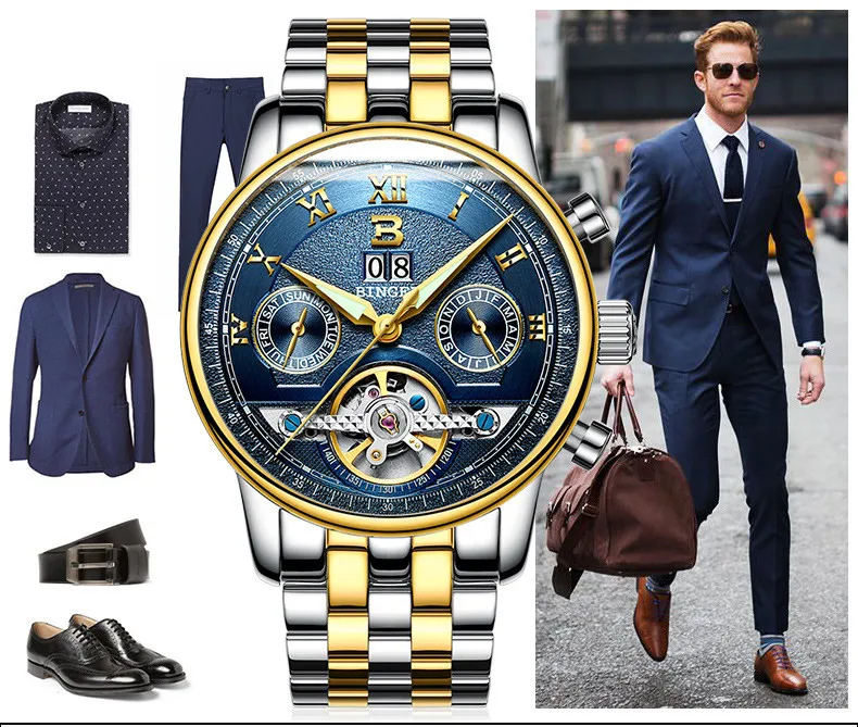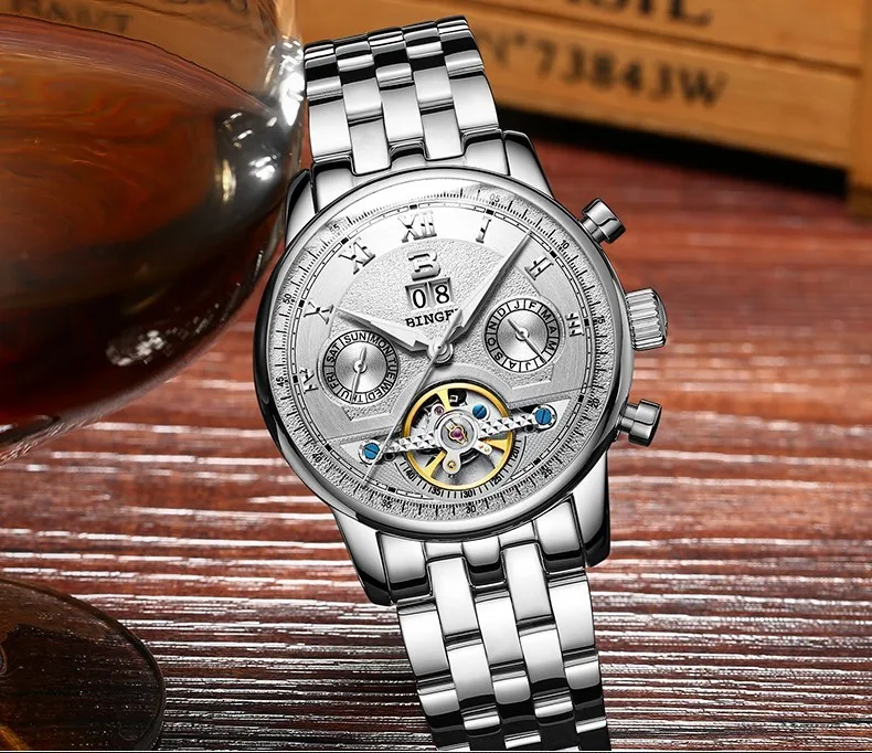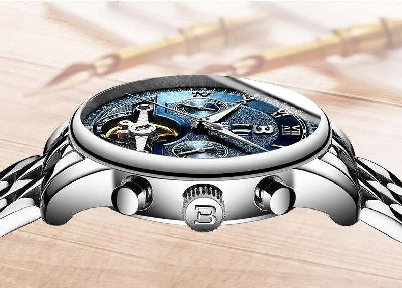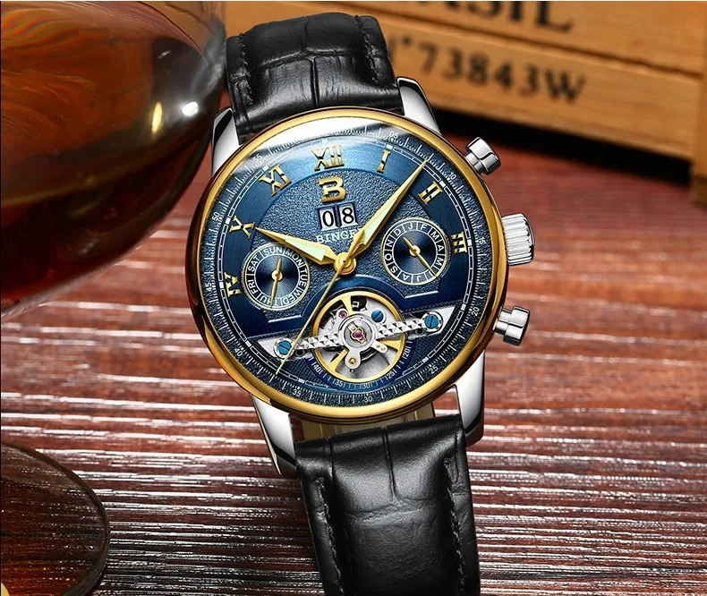 Швейцарские часы BINGER, мужские часы люксового бренда Tourbillon, многофункциональные водонепроницаемые Механические Мужские наручные часы, мужские наручные часы, B-8603M-6 icon star icon star icon star icon star icon star