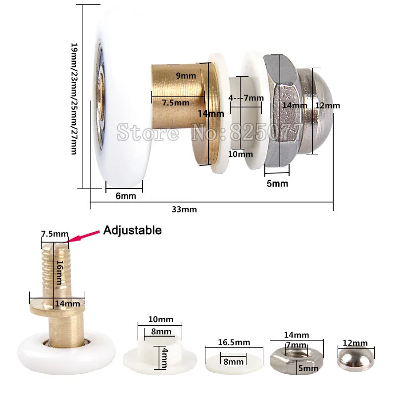 2 шт., латунные колёса для раздвижных дверей, 4-6 мм