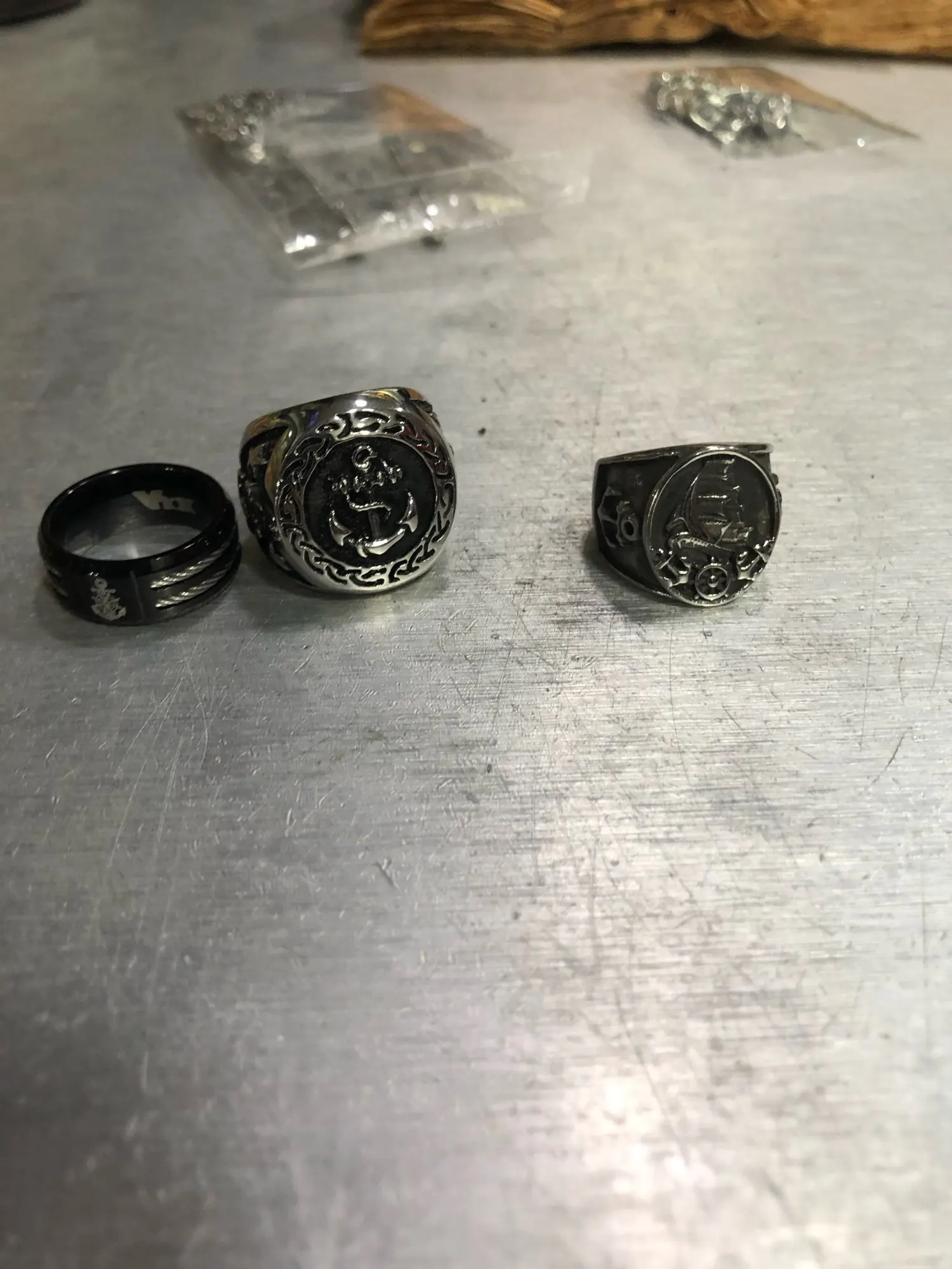 якорь рисунок, выполнен хорошо и не стирается... а само черное покрытие кольца царапается и начинает стираться
