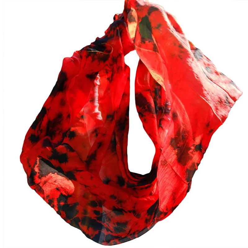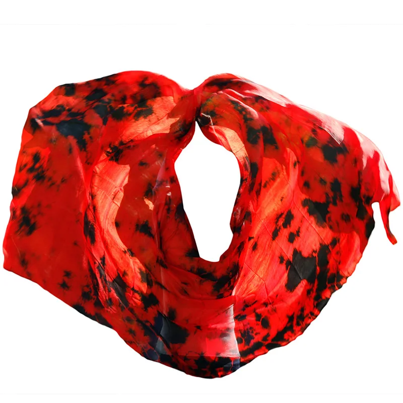 Вуаль для танца живота, дизайнерская, красная, желтая, 2019 натуральный шелк, 100%