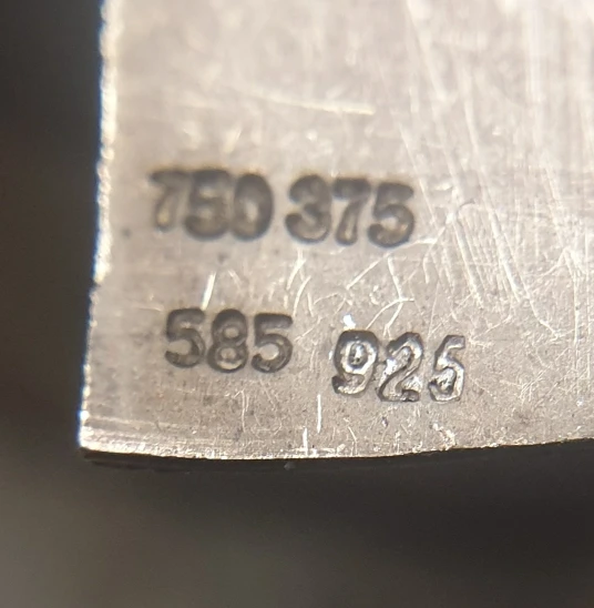 На клейме у цифры 9 нижний завиток отклонен - клеймо не ровное. Фото сделать проблематично - сильно мелкий оттиск
