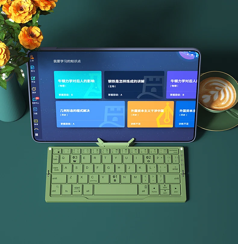 1. Беспроводная мини-клавиатура bluetooth со скрытыми подставками для удержания и поддержки вашего устройства, может использовать планшеты и смартфоны под идеальным углом обзора.