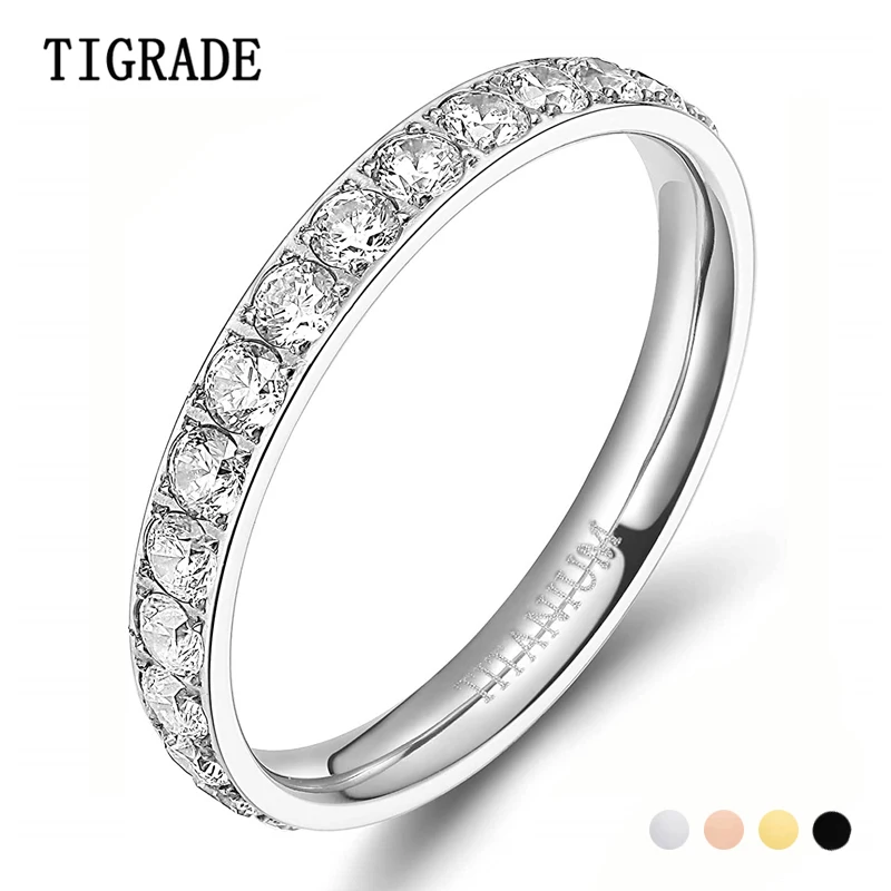 TIGRADE 3 мм черное розовое золото титановое кольцо для женщин кубический цирконий обручальное кольца вечности обручальное кольцо модного серебристого цвета