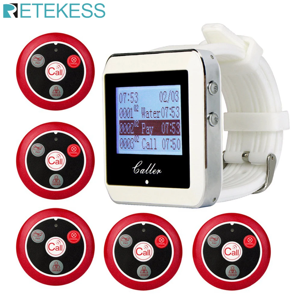 Беспроводная система вызова официанта RETEKESS для ресторанного сервиса пейджер система гость пейджер 1 приемник часов + 5 Кнопка вызова F3288B