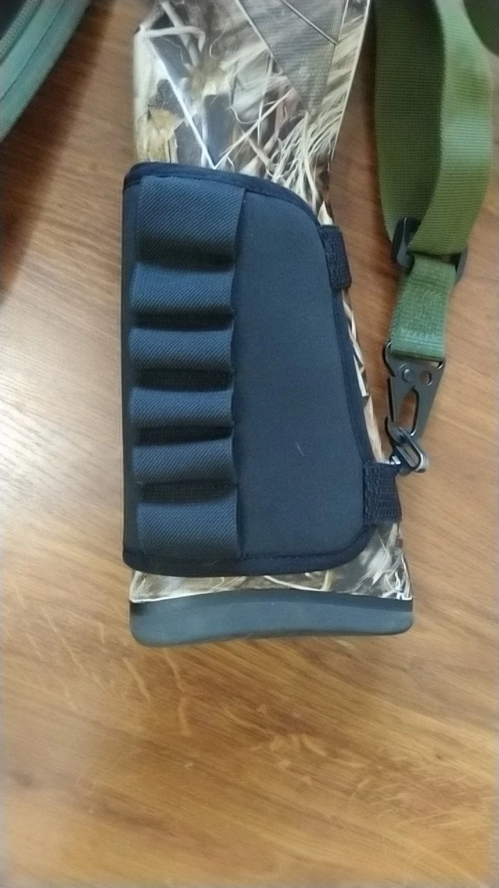Сшит качественно. Сидит на прикладе плотно, надежно. Надпись явно лишняя, заклеил черным скотчем.