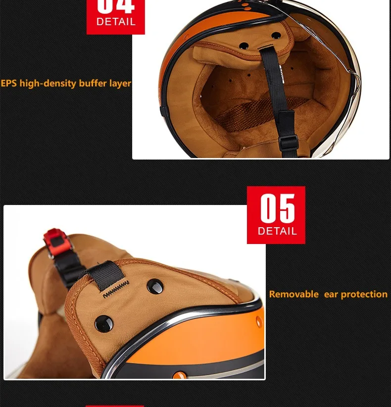 Шлем мотоциклетный винтажный с открытым лицом, в стиле ретро