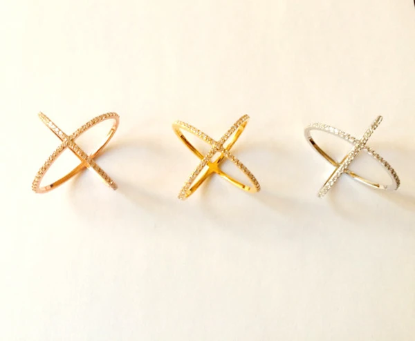 Хит продаж, золото, родиевый розовый золотой цвет, настоящее 925 пробы, серебро, микро проложить Циркон, крест, X кольцо, кольцо для женщин