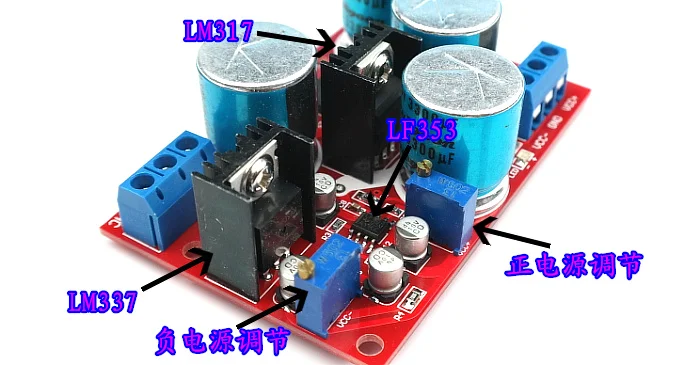 Плата серводвигателя op amp с использованием LF353 + LM317 + LM337, состоящая из двойного блока питания с регулируемой мощностью, с использованием четырех 3300 мкФ/25В, импортированных фирменных фильтров дизайн с низкой высотой (общая высота платы ниже 25 мм), эффект регулятора обычного источника питания сопоставим. Используется для усилителя мощности предварительного уровня, тона и другого низкомощного оборудования.
