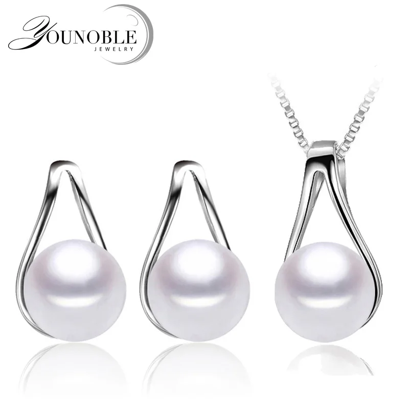 Комплект украшений из серебра 925 пробы с натуральным жемчугом, белое свадебное ожерелье, серьги, свадебный подарок для девочек, белый, розовый