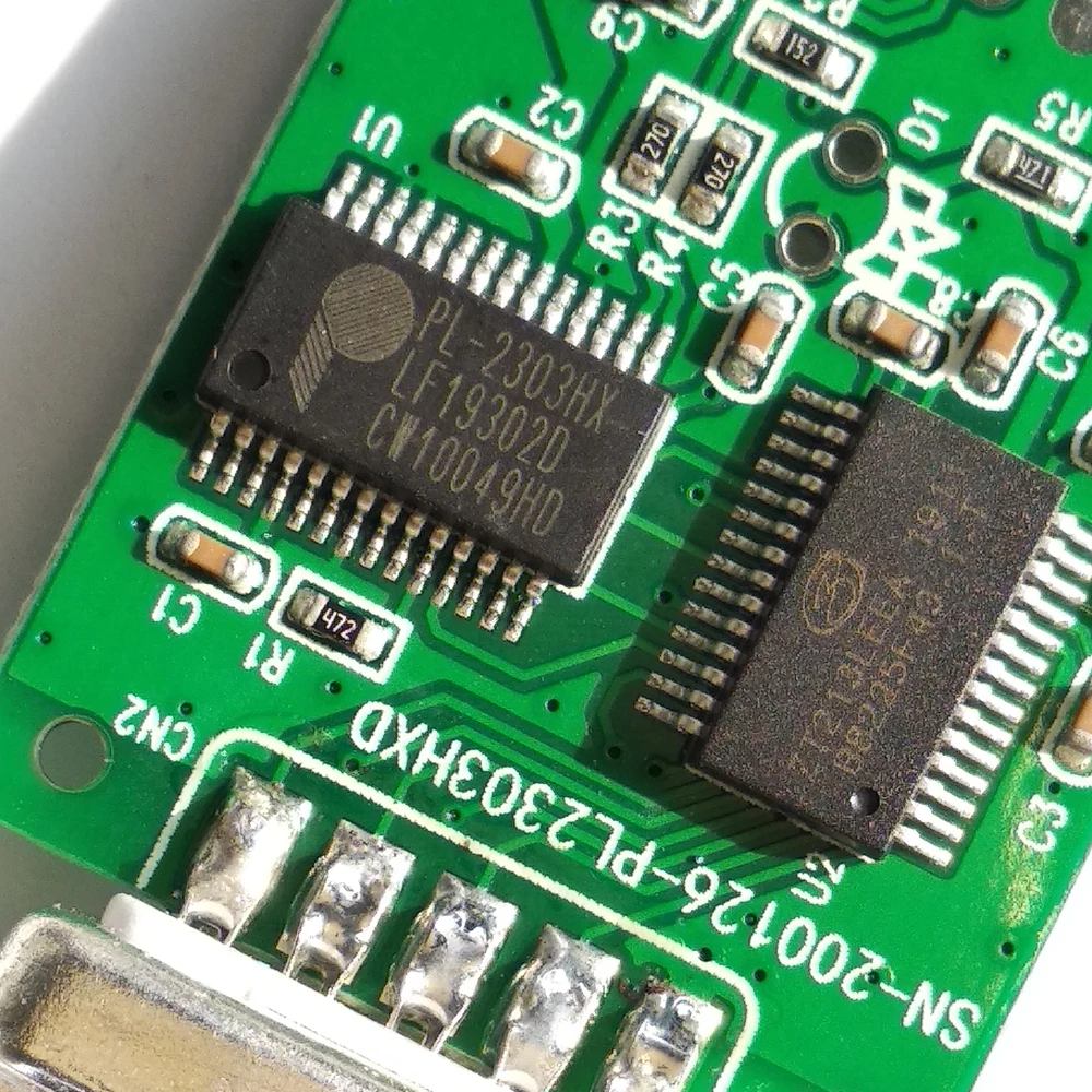 Что такое PL2303HXDПолностью соответствует спецификации USB v2.0 (полная скорость)Приемопередатчик On-chip USB1.1, 5v-3,3 v регуляторOn-chip 96 МГц генератор часовПоддержка RS232-like последовательного интерфейсаПолнодуплексный передатчик и приемник (TXD и RXD)Шесть штифтов управления модемом (RTS,CTS,DTR,DSR,DCD,RI)5,6,7 или 8 бит данныхНечетный, ровный, отметьте, пробел или нет режим четностиОдна, одна с половиной или две остановкиОшибка паритета, ошибка кадра и обнаружение серийного разрываПрограммируемая скорость передачи данных от 75bps до 12M bpsВнешний RS232 драйвер питания вниз управленияНезависимый источник питания для последовательного интерфейсаШирокий механизм управления потокомРегулируемый высокий/Низкий уровень водяных знаковАвтоматическое аппаратное оборудование управления потоком с CTS/RTS или DSR/DTRАвтоматическое управление потоком программного обеспечения с XON/XOFFОбнаружение обратного потока буфера данныхConfigurale 512 байт двунаправленный данных буфера256 байт исходящий буфер и 256 байт входящий буфер или 128 байт исходящий буфер и 384 байт входящий буферПоддержка удаленного пробуждения от входных сигналов модемаЧетыре разъема общего назначения I/O(GP0,GP1,GP2,GP3) и четыре дополнительных разъема общего назначения I/O(RI_N, DSR_N, CDC_N и CTS_N)Встроенный чип OTP ROM для конфигурации устройства запускаПоддержка Windows, Mac OS, Linux и WinCEPL-2303HX-это недорогой и высокопроизводительный usb-контроллер для последовательного моста. PL-2303HX обеспечивает удобное решение для подключения RS-232 полнодуплексного асинхронного последовательного устройства к любой универсальной последовательной шине (USB). PL-2303HX высокосовместимые драйверы могут имитировать традиционный com-порт на большинстве операционных систем, позволяя существующим приложениям на основе com-порта легко мигрировать и быть готовы к использованию USB. PL-2303HX предназначена исключительно для мобильных и встроенных решений, обеспечивая небольшой размер, который может легко поместиться в любые разъемы и портативные устройства. С очень небольшим энергопотреблением в режиме работы или приостановки, PL-2303HX идеально подходит для работы шины с большим количеством мощности, оставленной для подключенных устройств. Гибкий сигнал уровня вы хотели бы направить какие-либо рекомендации RS-232 последовательный порт сбоку, а также позволяет им PL-2303HX напрямую подключаться к 3,3 V ~ 1,8 V устройств. PL-2303HX интегрирует генератор часов на чипе и OTP ROM, чтобы сохранить внешний кристалл и EEP ROM. Клиенты могут спроектировать с эффективной стоимостью BOM и компактным размером PCB.ОсобенностиПолное соответствие спецификации USB v1.1Приемопередатчик On-chip USB 1,1 и регулятор 5V -> 3,3 VПоддерживает RS-232 последовательный интерфейс с программируемой скоростью передачи данных от 75 бит/с до 12 Мбит/с (Rev D)Поддерживает интерфейс RS422/RS485 (Rev D)Интегрирует генератор часов на чипе (Rev D)On-chip OTP (однократное программирование) ROM Для конфигураций устройств запуска, таких как строка продукта и строка серийного номера (Rev D)Расширенный механизм управления потоком, такой как регулируемый высокий/Низкий уровень водяных знаков, автоматическое аппаратное оборудование или управление потоком программного обеспечения и обнаружение перелива буфера данныхНастраиваемый 256 байтовый исходящий буфер и 256 байтовый входящий буфер; Или 128 байтовый исходящий буфер и 384 байтовый входящий буферПоддержка удаленног