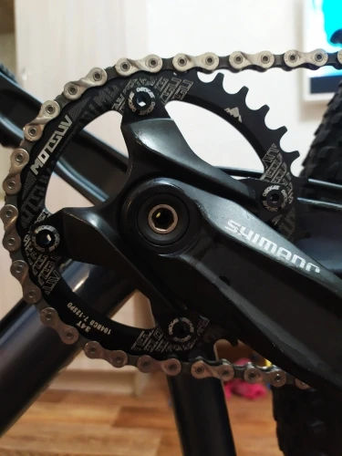 Хорошая, легкая, красивая звезда. Заказывал на 32зуба, и это прям то, что мне нужно. Трансмиссия теперь 1х9 велосипед стал легче примерно на пол.кило. Проблем с въезжанием в горки нет. Очень доволен покупкой! Приехала звезда быстро недели за 3, не больше.