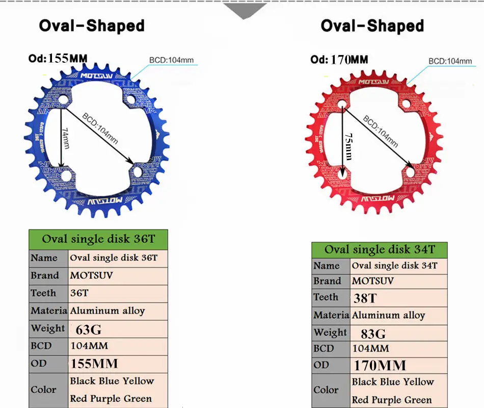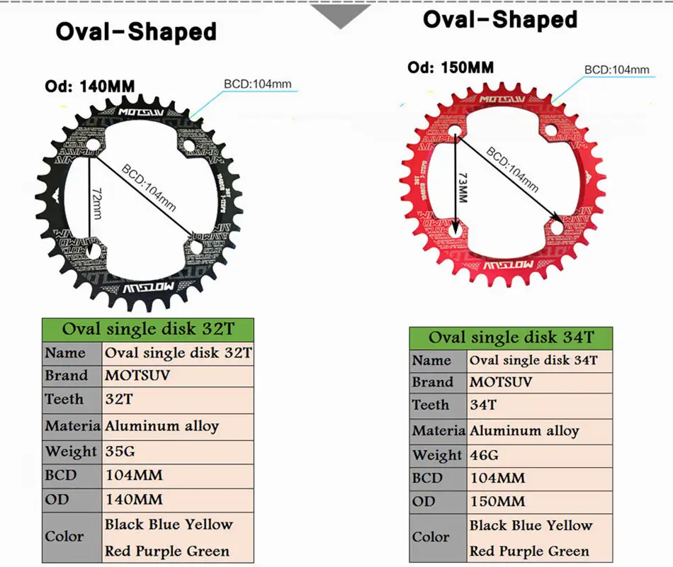 Велосипедная звезда MOTSUV, овальной формы, 32T34T36T38T, 104BCD