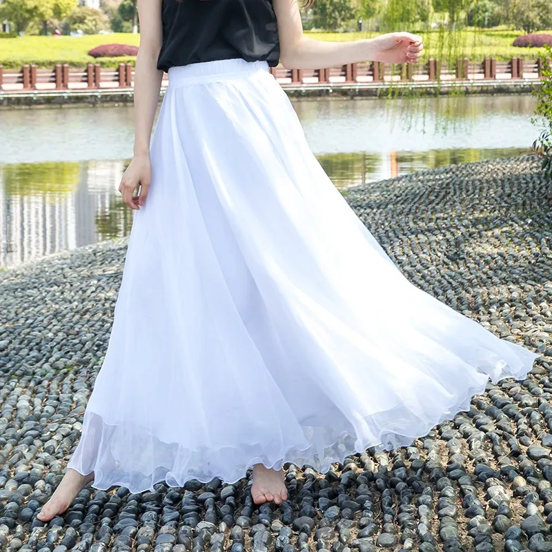 SETWIGG богемные макси длинные летние пляжные юбки эластичная резинка на талии блестящая вуаль плиссированные длиной до пола милые юбки 25 цветов 85-100 см icon star icon star icon star icon star icon star