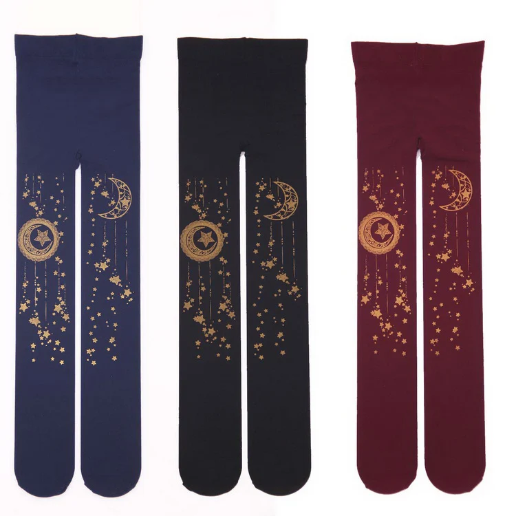 Колготки Kawaii для девочек, милые колготки 100D в стиле Лолиты с золотой звездой и Луной