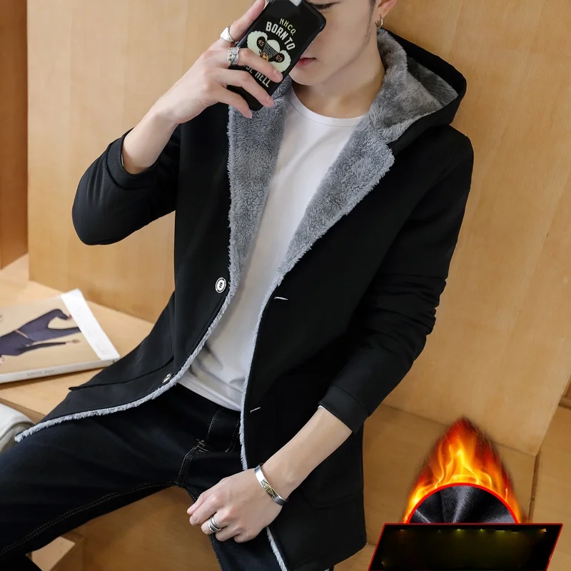 Зимние мужские пальто с теплым капюшоном, модная зимняя мужская теп...