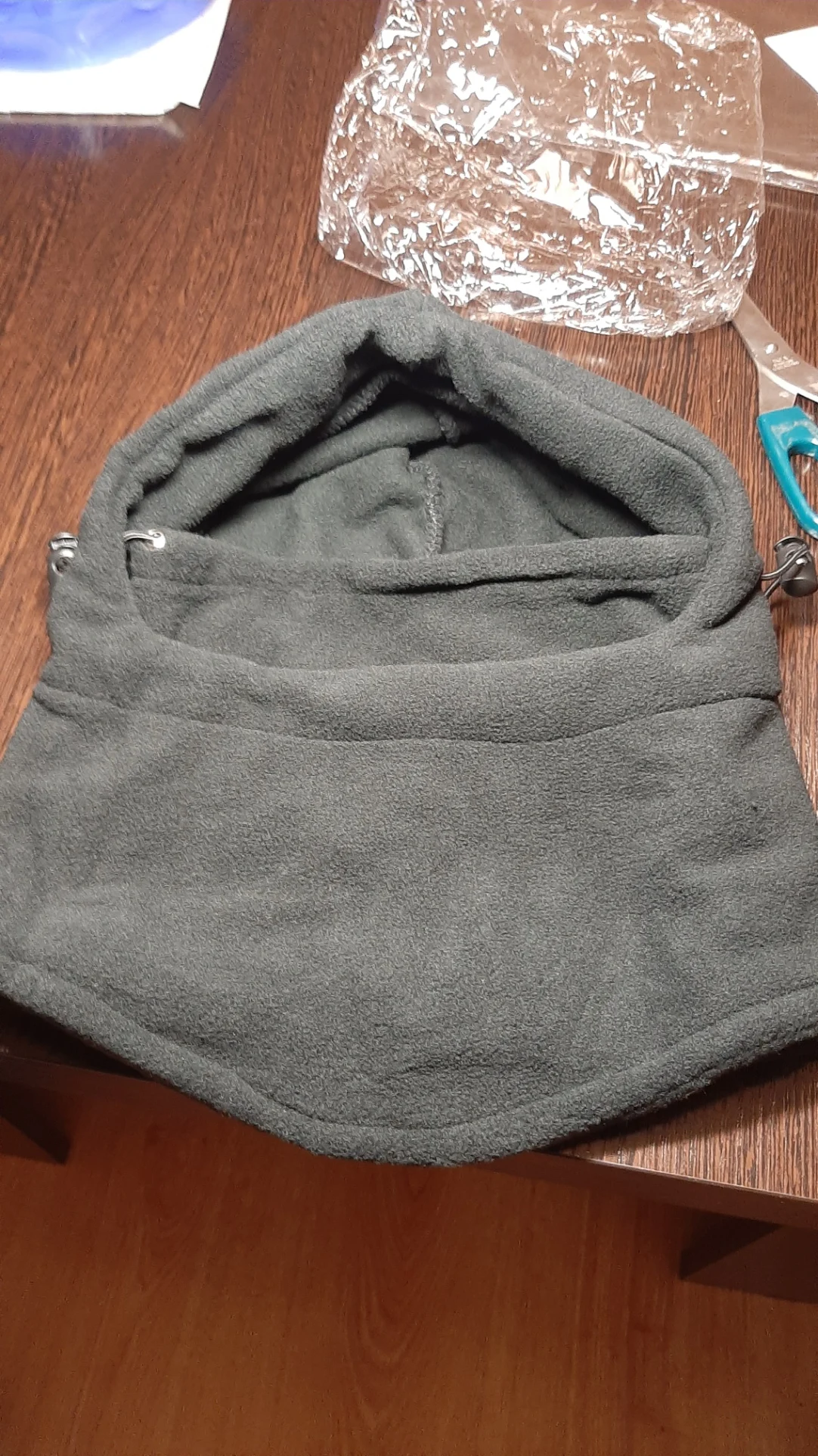 теплая балаклава, больше даже капюшон. можно поверх шапки надевать