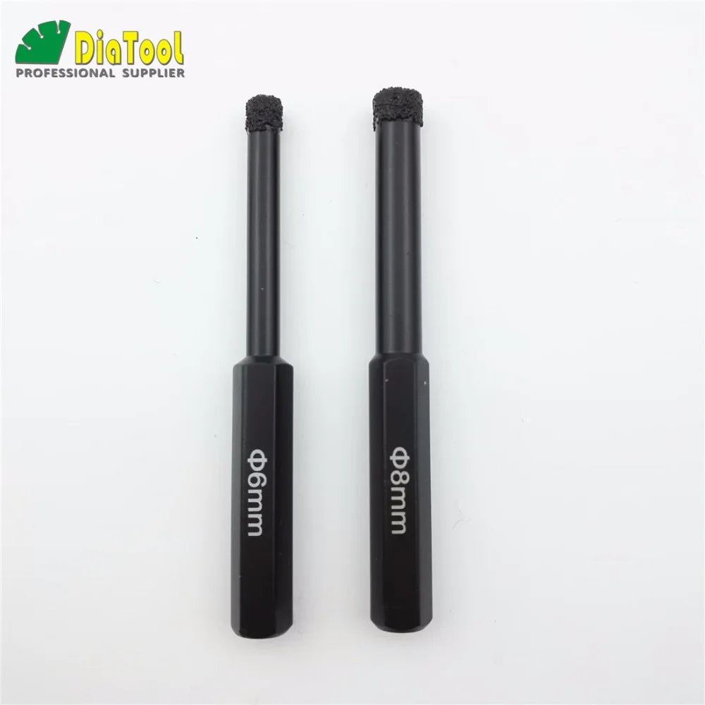 DIATOOL 2pcs Hex Vacuum Brazed Wet Drill Bits 1pceach Size Hexagon Shank Diamond Set 5 kind size Hexagon Shank Drill Bits Wet