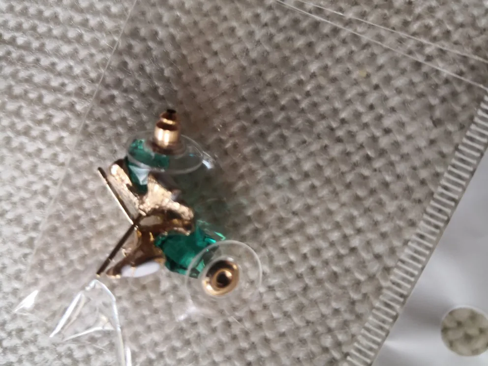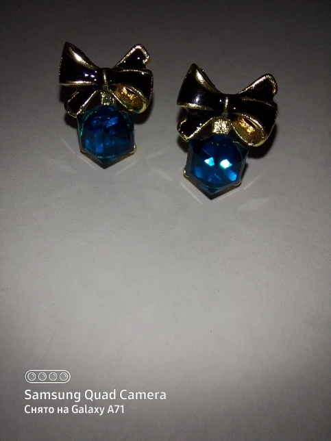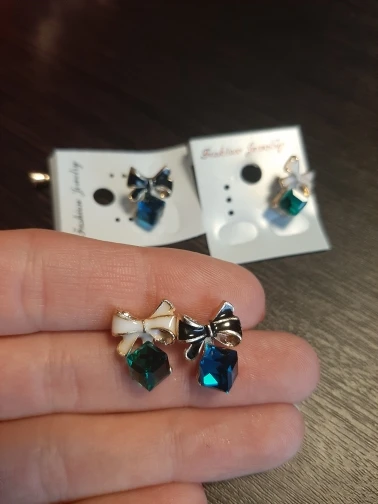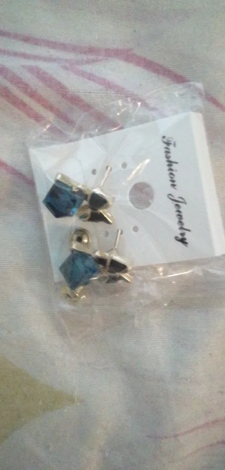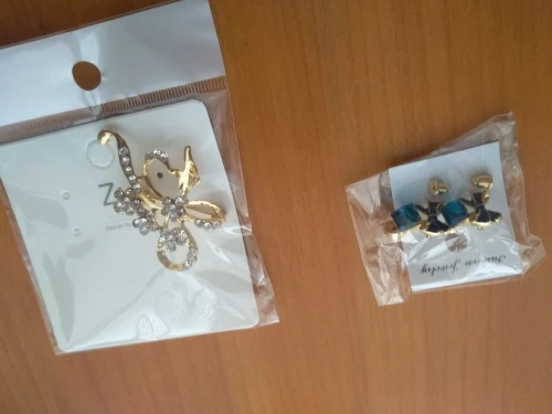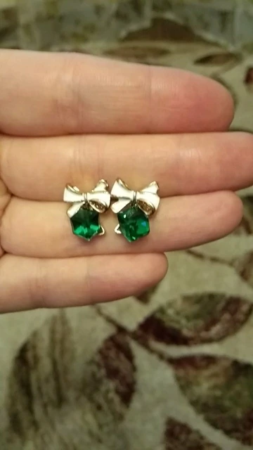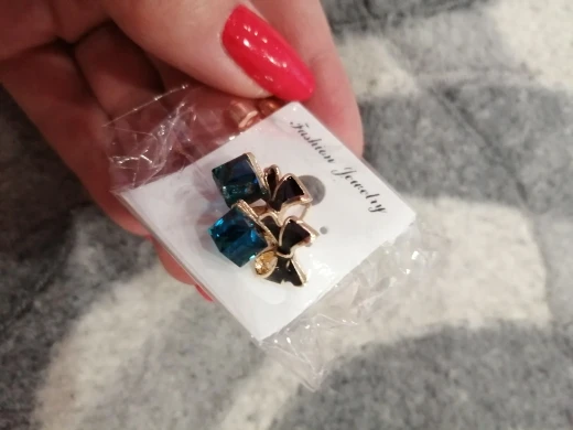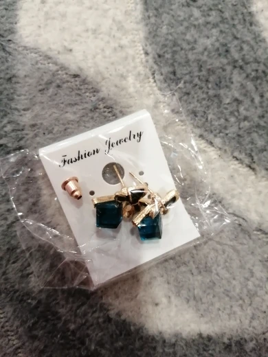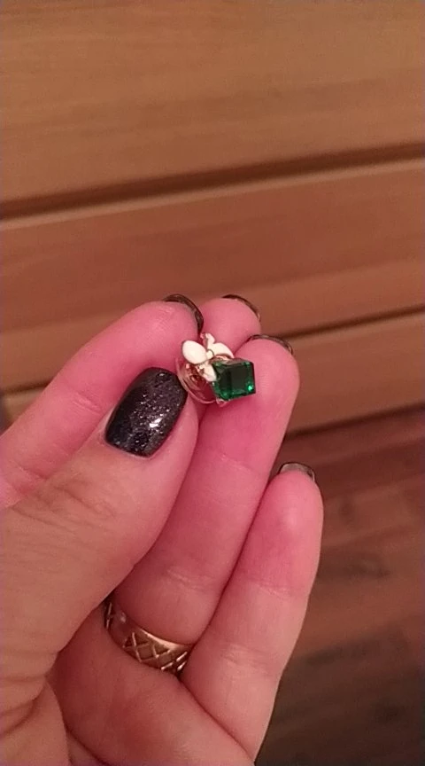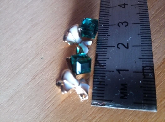 Посылка пришла быстро. Сами серьги не очень, если не присматриваться, то конечно не заметно, но камень на одной криво приклеен, краска лежит неаккуратно, "позолота" наляпана на самих камешках. За такую цену сойдет, но больше дешевые точно не возьму.