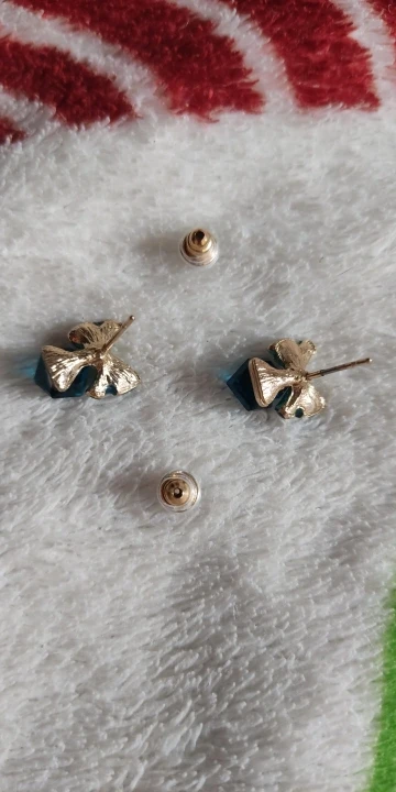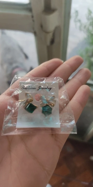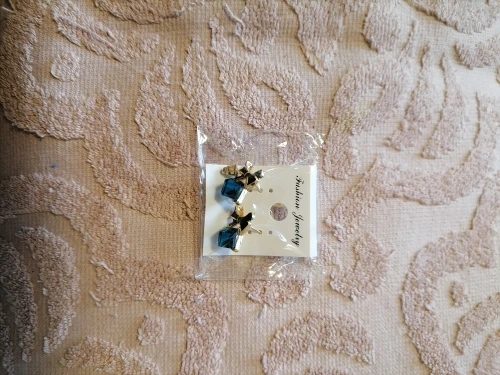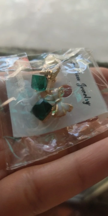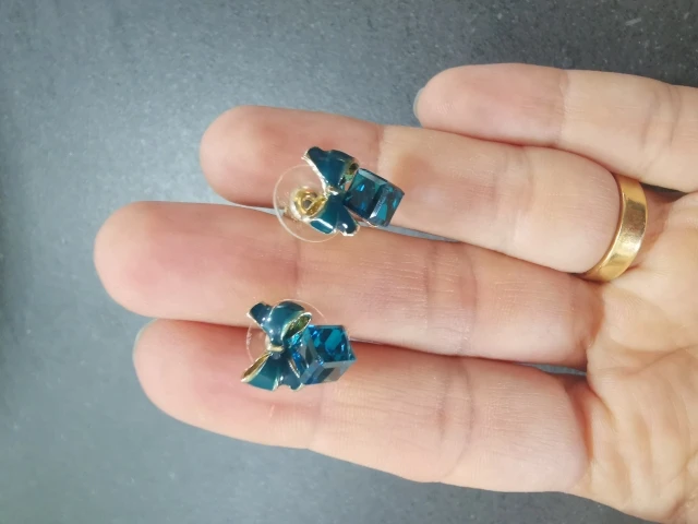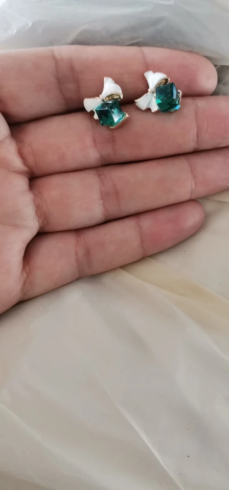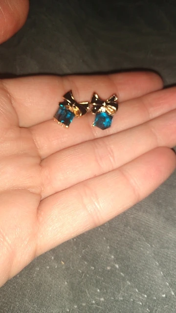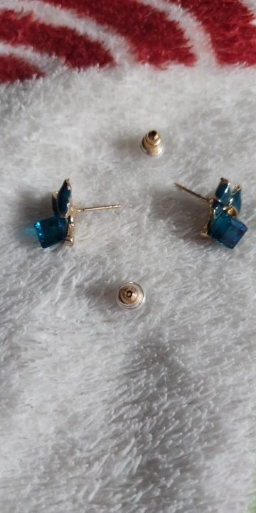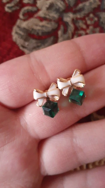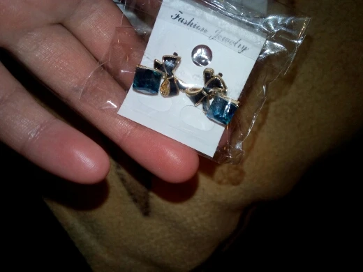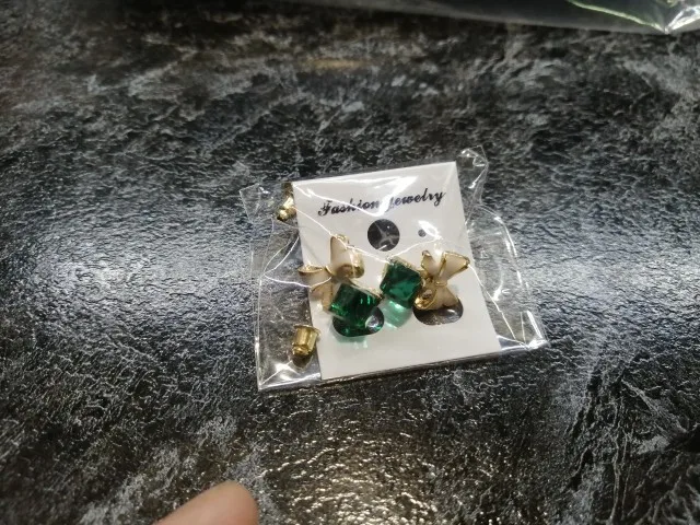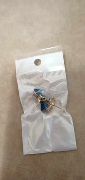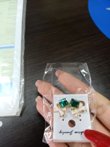 Посылка пришла быстро. Сами серьги не очень, если не присматриваться, то конечно не заметно, но камень на одной криво приклеен, краска лежит неаккуратно, "позолота" наляпана на самих камешках. За такую цену сойдет, но больше дешевые точно не возьму.