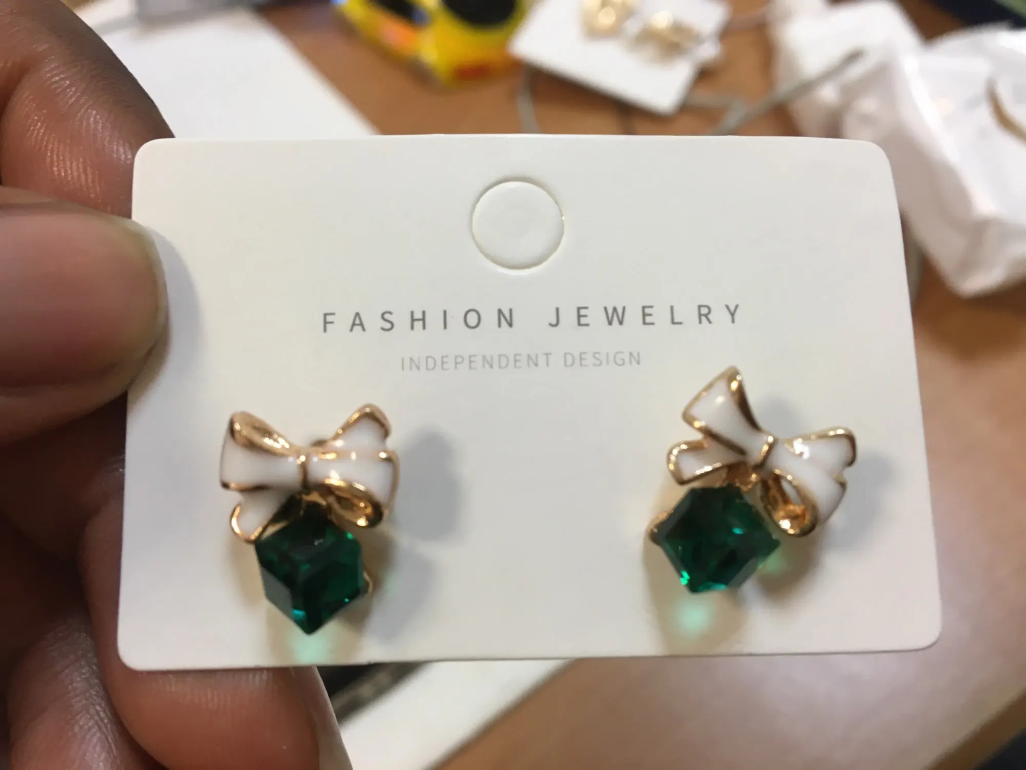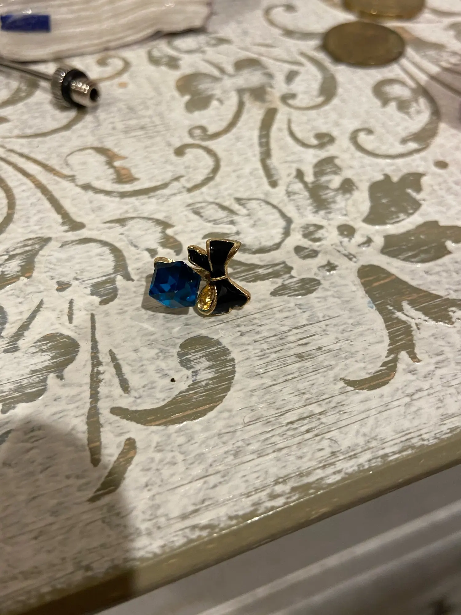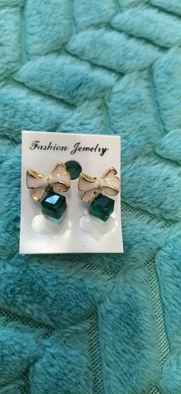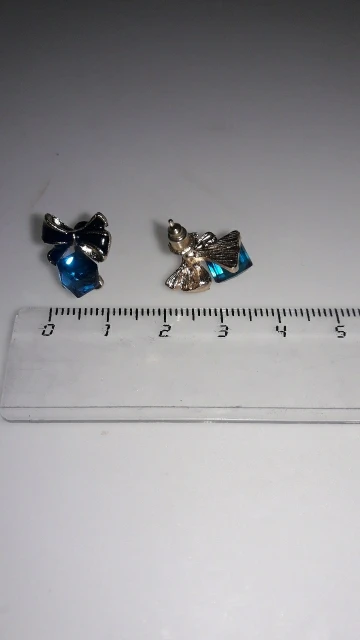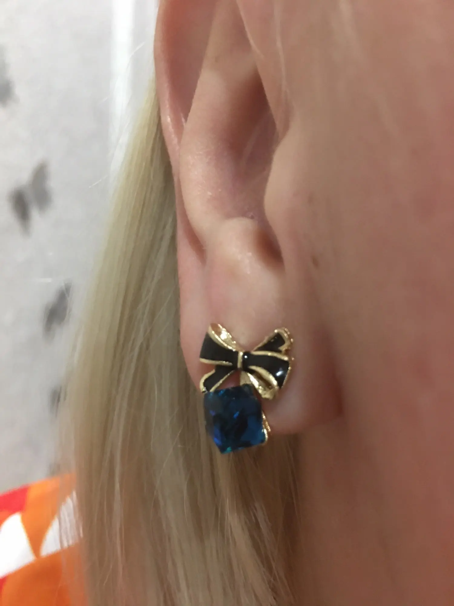 Небольшие симпатичные серьги. Бант раскрашен в чёрный цвет. Камушек яркий. За эти деньги - супер!