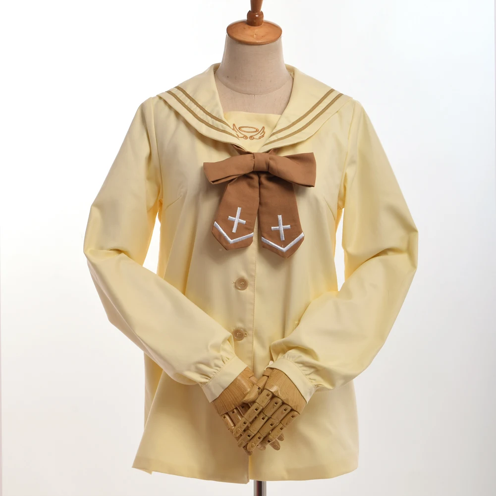 Милое пальто с матросским воротником для девушек, школьный Ангелдьявол, узор крест, вышивка, галстук-бабочка, верхняя одежда с длинным рукавом