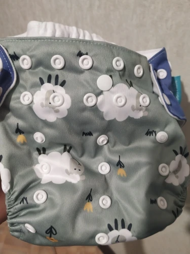 Очень красивые подгузники и высококачественные. Тестировать будем, когда родится ребенок. Тогда и добавлю отзыв. Сделала два фото: одно показывает самый маленький размер: застегнуто на самые ближние кнопки, второе фото показывает самый большой размер : застегнуто на самые последние кнопки. На спине кармашек, куда вставляются вкладыши.
