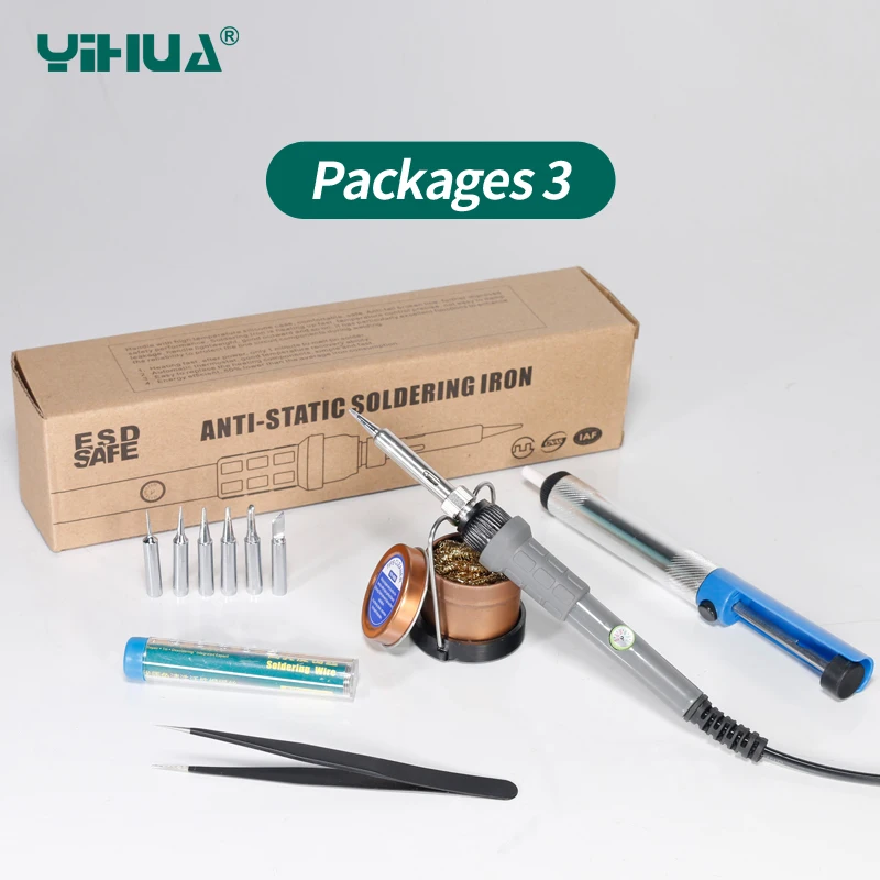 Регулируемый паяльник YIHUA 947-II, Электрический паяльник с наконечниками, 60 Вт, для сварки и переделки