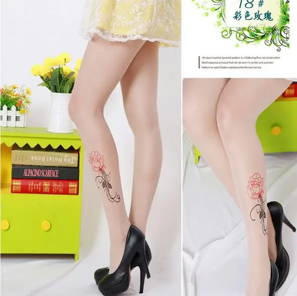 QA92 поддельные татуировки печати колготки 15D бархатные колготки женские ультра шоу тонкие прозрачные чулки