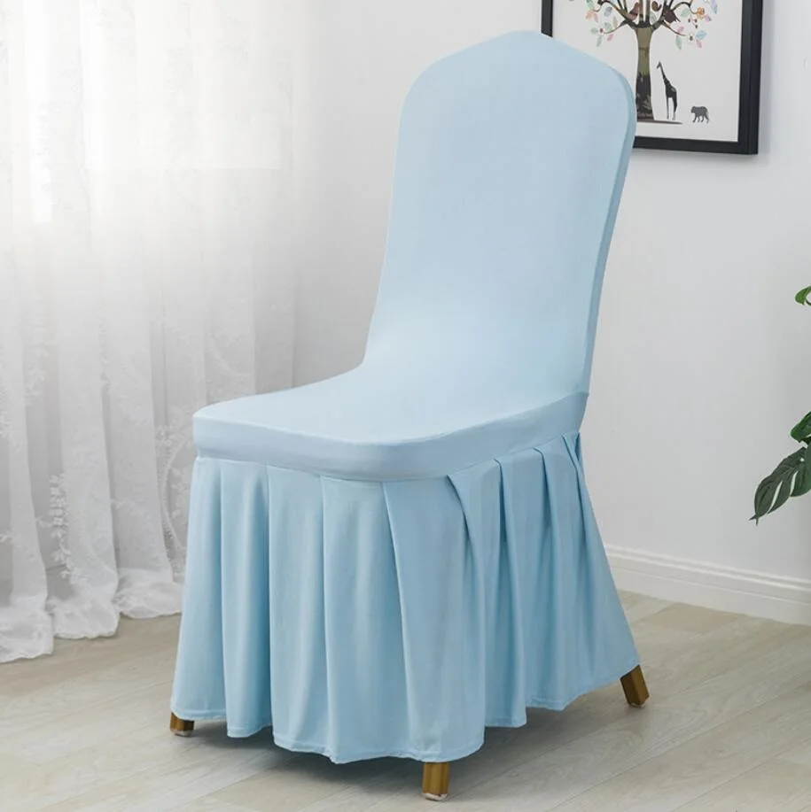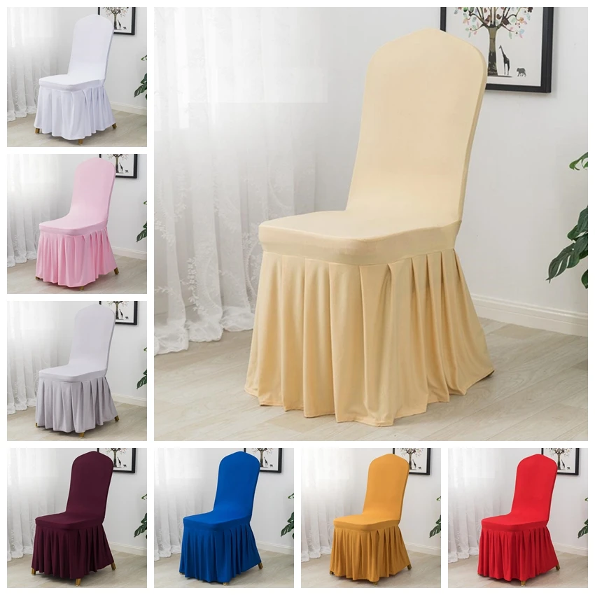 Чехол на стул из спандекса, 24 цвета, эластичный, со складками, с юбкой, для свадьбы, вечеринки, отеля, банкета