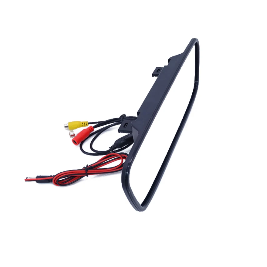 5 "цветной TFT LCD Автомобильный зеркальный мониторИзображение с высоким разрешением: 800 Вт * RGB * 480 ч.С 2 видео входом: белый видео кабель подключается к автомобильной камере заднего вида, желтый один к другому видео оборудованиюПоддерживает автомобильный DVD, VCD, камеру и другое видео оборудование