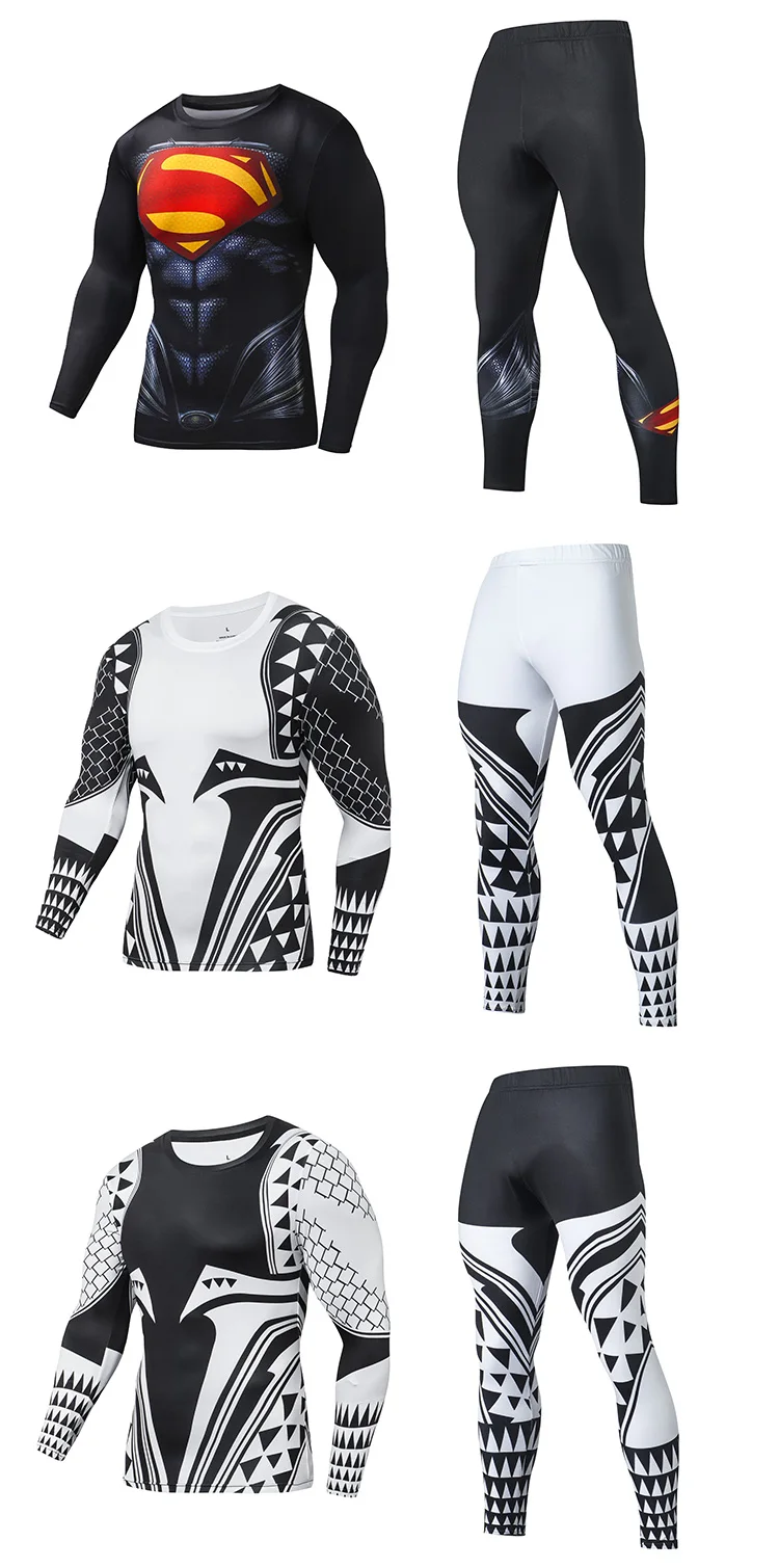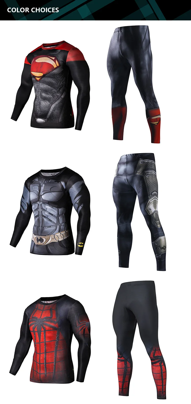 Мужская компрессионная тренировочная одежда для тренажерного зала, костюмы для тренировок, спортивная одежда супергероя для бега, фитнеса, сухой крой, спортивный костюм, колготки 2 шт.компл.