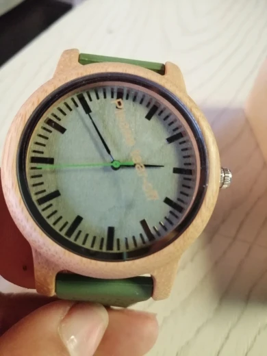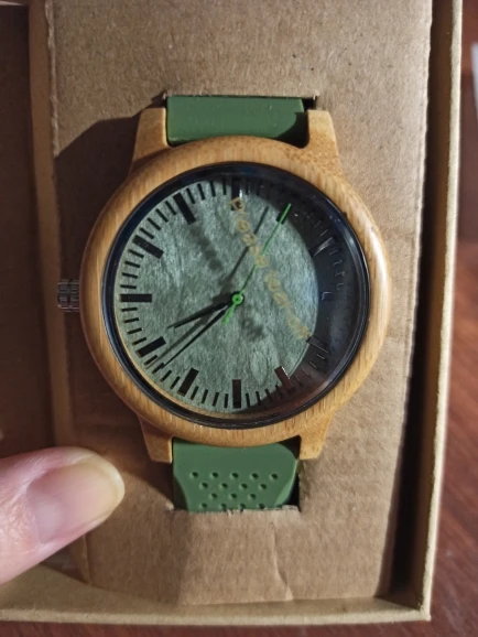 Часы наручные мужские с деревянным ремешком, кварцевые с зеленым силиконовым ремешком, с коробкой, W-B06