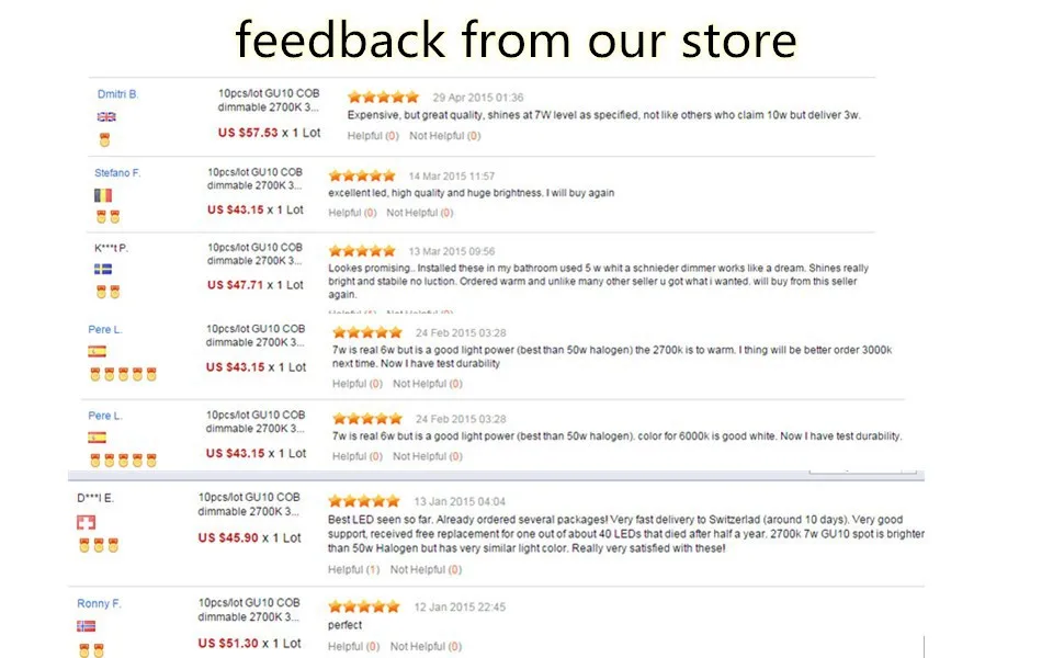 Мы показываем реальную светодиодную мощность наших продуктов. 100% истина. Но, к сожалению, некоторые другие поставщики предлагают 3 Вт, но говорят, что 9 Вт, а 15 Вт-всего 5 Вт, я путаю, почему aliexpress принять это lier.
