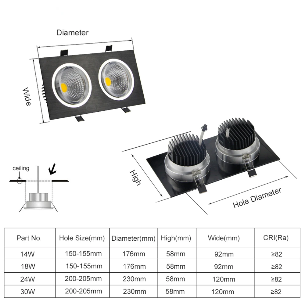 DBF черный квадратный 2 головки, Встраиваемый светодиодный потолочн...