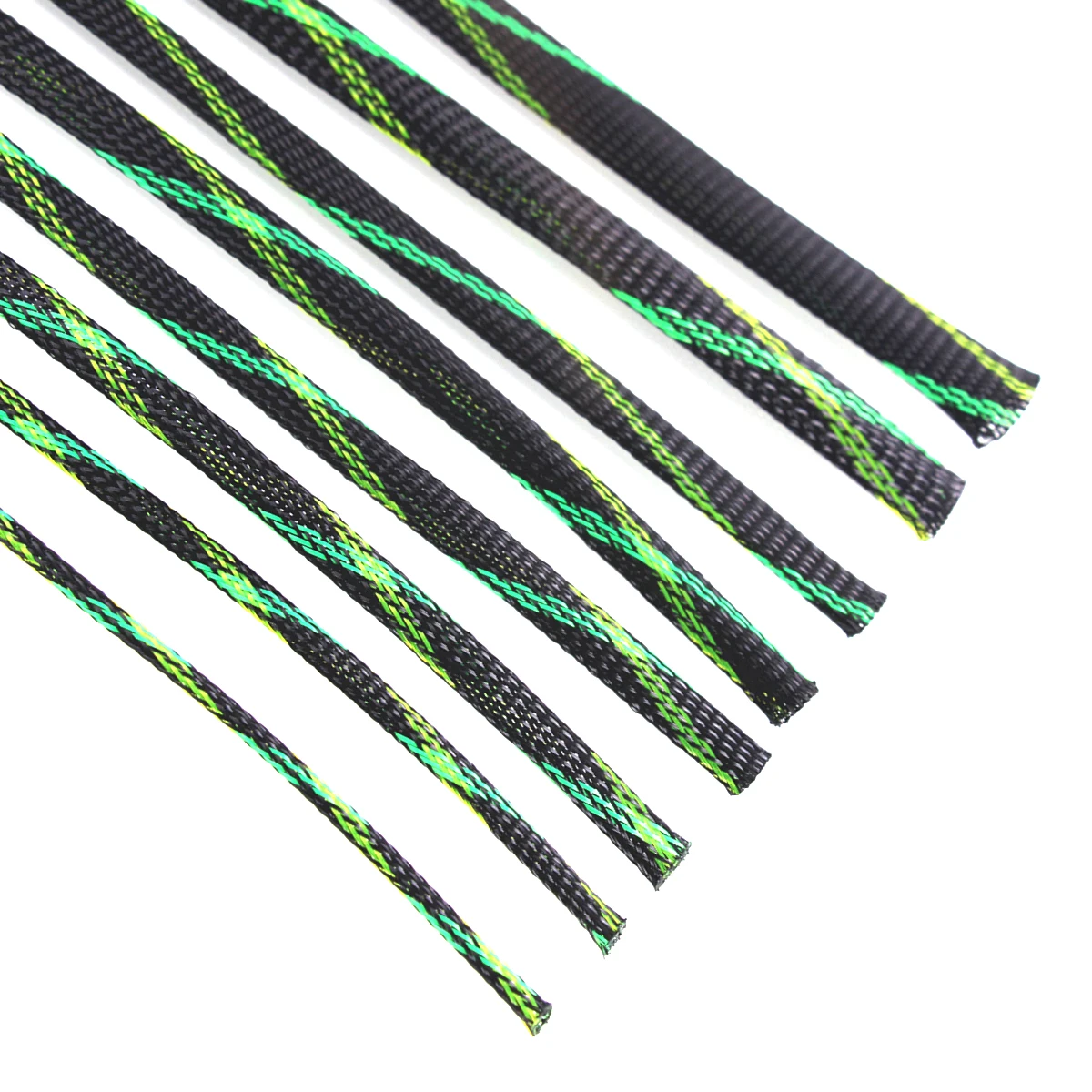 5 м Расширяемый ПЭТ плетеный рукав черный, зеленый и желтый провод кабель рукав высокой плотности Обшивка ПК кабель Органайзер 4-25 мм