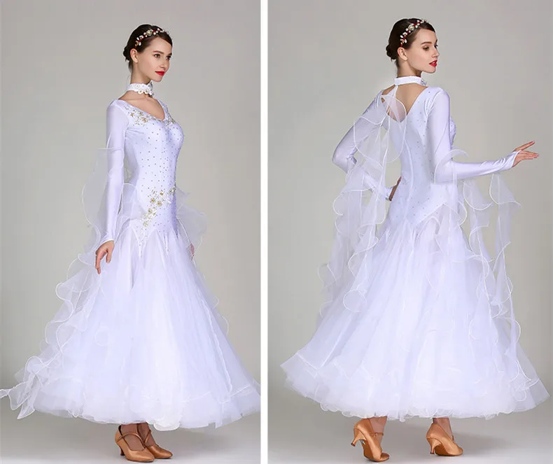 Элегантное белое платье с V-образным вырезом и блестками, стандартное платье для вальса, для бальных танцев, платье для Foxtrot, танцевальная одежда icon star icon star icon star icon star icon star