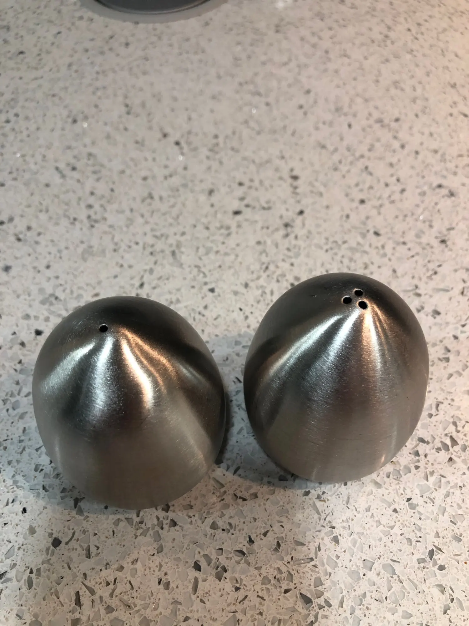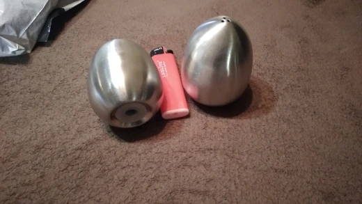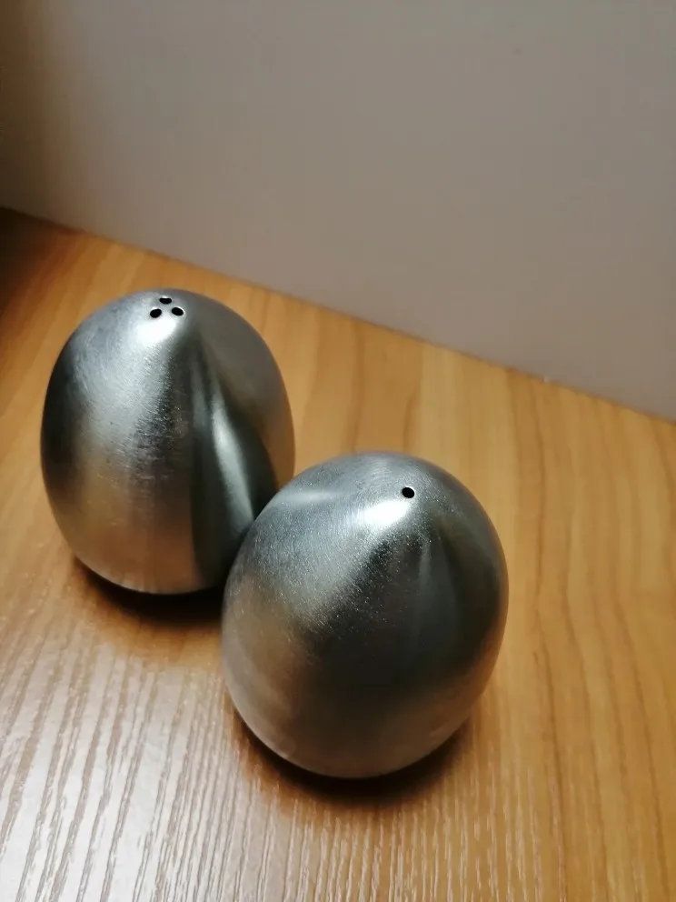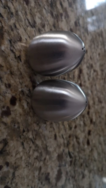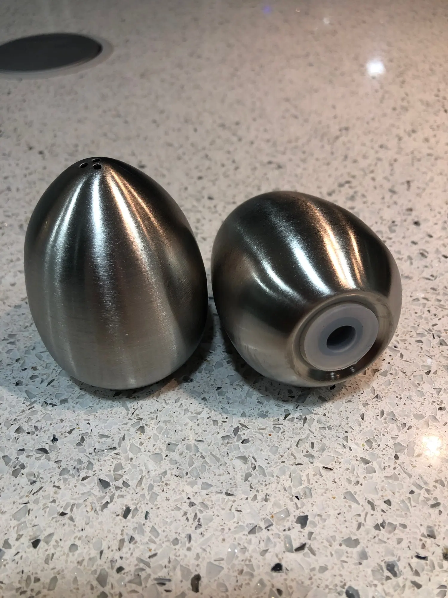 Набор очень понравился, оригинальный и весёленький - для соли, перца и хорошего настроения) Описанию соответствует, нержавейка обработана качественно, дефектов нет. Яйца заметные - 8см в высоту, 6см в ширину, ровненькие, сделаны очень аккуратно. Дырочки не маленькие, я засыпала каменную соль и перец среднего помола. Закрываются плотно, пластиковыми фиксаторами. Доставка полтора месяца, трек отслеживался до нашей границы. Каждое яйцо пришло в отдельном пакетике, плюс оба обёрнуты мягким вспененным полиэтиленом. Продавцу большое спасибо, набор советую - на любой кухне будет смотреться отлично.