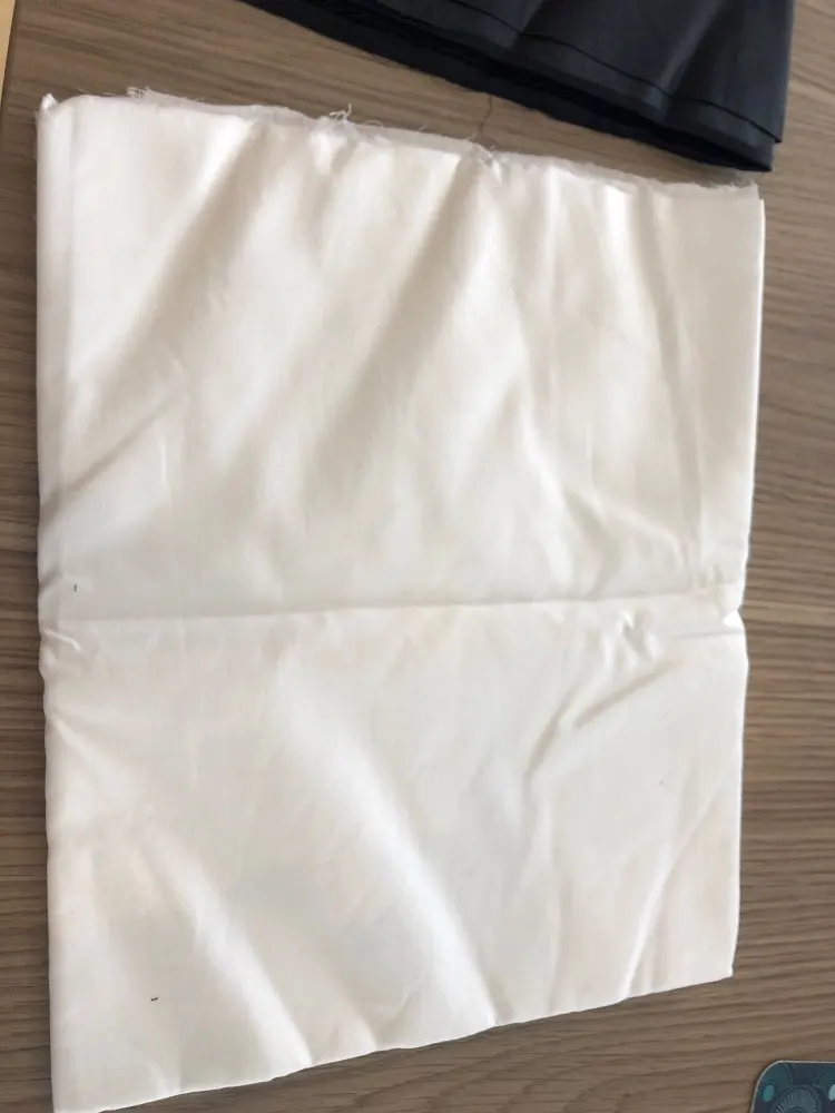 Белый кусок материи, плотный. Был заказан для испытания новой швейной машины. Размер совпадает.