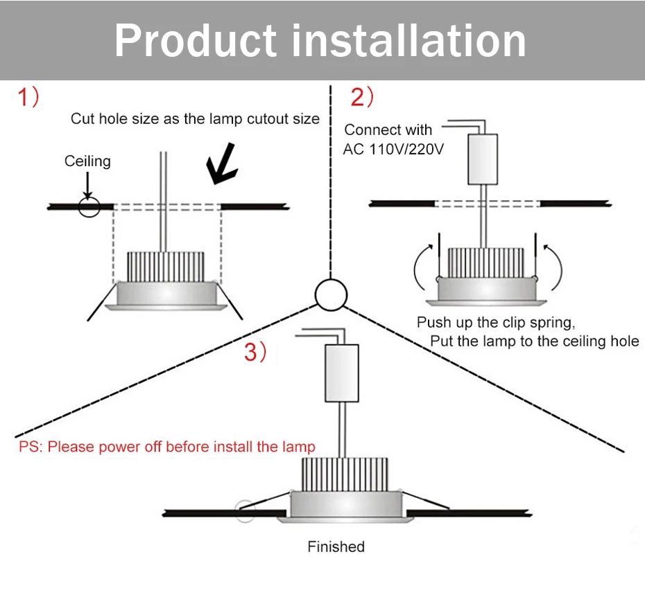 Светодиодный встраиваемый светильник COB с регулируемой яркостью 10...