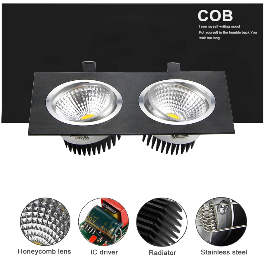 Яркий светодиодный светильник с регулируемой яркостью COB 14 Вт 18 Вт 24 Вт 30 Вт квадратный 2 головки потолочного встраиваемого потолочного светильника Внутреннее освещение домашний декор AC85-265V.