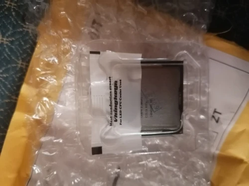 Работает без нареканий, думал будет хуже. Приехал в мешочке и упаковке как на 1 фото. Был чистым без разводов. Лежал в маленькой прозрачной коробочке. С ним в комплекте лежала термопаста, ей и пользуюсь до сих пор.температура не понимается выше 80 и иногда даже 64 под нагрузкой. Используется с боковым интеловским куллером для игр.