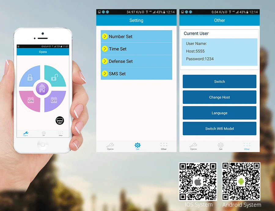 Эта аварийная система является высококлассной GSM и Wi-Fi и WI-FI dual-net сигнализация с Стабильная и надежная производительность и применяется 1,7-дюймовый TFT цветной экран и сенсорная клавиатура со встроенным мощным Процессор мастер и отличную работу опыт. Автоматическая Голосовая подсказка или sms-сообщение уведомляют о местоположении и событиях при оповещении. Совместим с беспроводным PIR датчиком, датчиком двери, детектором дыма, детектором газа, кнопкой паники и т. д. После получения сигнала тревоги хост будет отображать зону сигнализации и сирена 80 дБ на месте, сигнал тревоги 110 дБ при подключении к проводной сирены, в то время как текст и номер предварительно настроены, чтобы сообщить пользователю через WIFI. Он широко используется для дома, фабрики, школы, магазина, виллы и жилого района, чтобы обеспечить защиту ценных активов.